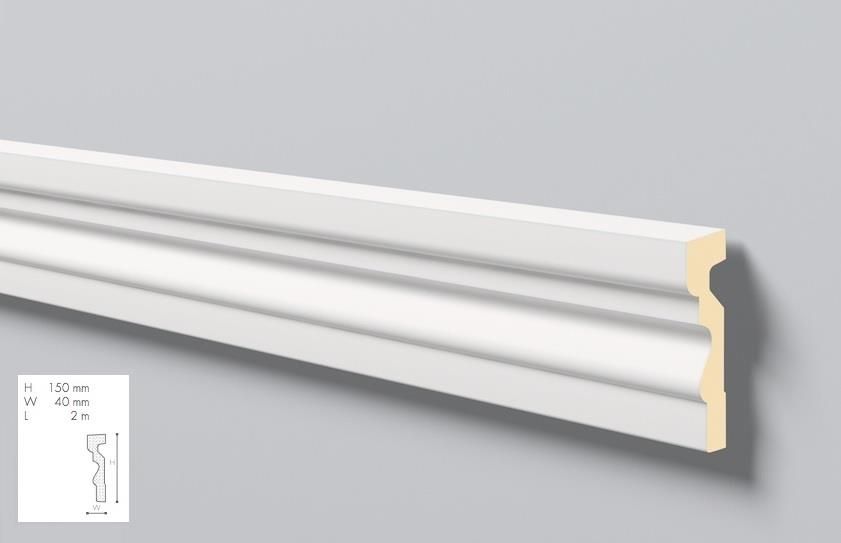Sztukateria elewacyjna wykonana jest z materiału wytrzymałego na warunki pogodowe, odpornego na wilgoć i zapewniającego długotrwały niezmienny wygląd. Materiał użyty do produkcji sprawia, że montaż listew elewacyjnych jest łatwy i szybki a przycinanie nie sprawia większego problemu. Materiał:Pianka poliuretanowa o wysokiej gęstości 200kg/m3. Wykończenie powierzchni elementów stanowi farba podkładowa w kolorze szarym, na powłoce syntetycznej. Powierzchnie przyczepne pokryte zostały rowkami zwiększającymi przyczepność kleju. Produkt posiada wszelkie certyfikaty i klasyfikacje ogniowe. Zalecane kleje:Klej montażowy 310ml Klej Hybrydowy 290ml Tempetratura montażu: temperatury montażu: +5°C / +25°C temperatury użytkowania: -20°C / +70°C Klasyfikacja ogniowa:B2 zgodnie z normą DIN 4102 Euroclasse E zgodnie z normą EN ISO 13501- Wymiary: 15 x 4 x 200 cm