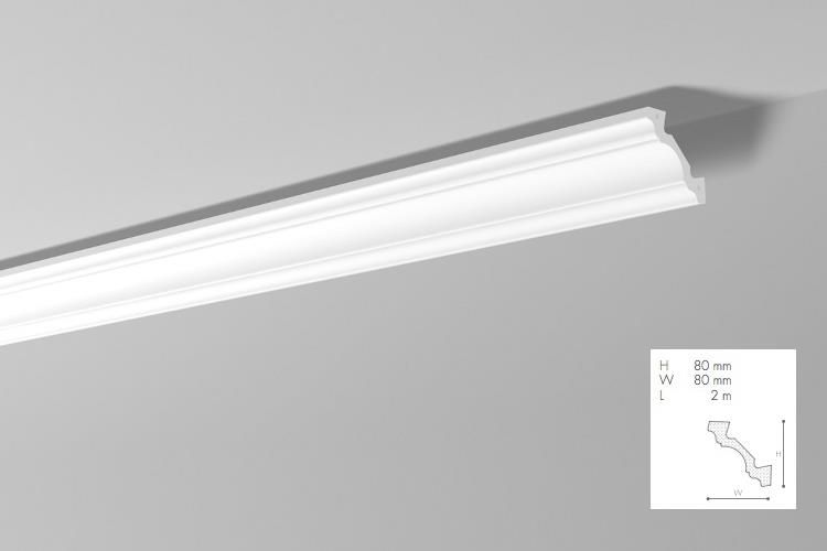 Wymiary: 8 x 8 x 200 cm Listwa przysufitowa posiada bardzo gładką powierzchnię z folii syntetycznej pokrytą warstwą białej matowej farby akrylowej. Po zamontowaniu zalecamy pomalowanie sztukaterii farbami akrylowymi lub dyspersyjnymi celem ekskluzywnego wykończenia produktu. Kolekcja NMC ARSTYL …