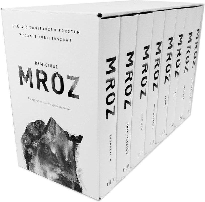 WYDANIE JUBILEUSZOWE Wiktor Forst powraca! Żaden pożar nie trwa wiecznie. Ale każdy zostawia zgliszcza. Pewnego ranka turyści odkrywają na Giewoncie makabryczny widok – na ramionach krzyża powieszono nagiego mężczyznę. Wszystko wskazuje na to, że zabójca nie zostawił żadnych śladów. Sprawę prowadzi niecieszący się dobrą opinią komisarz Wiktor Forst. Zanim tamtego ranka stanął na Giewoncie, wydawało mu się, że widział w życiu wszystko. Tropy, jakie odkryje wraz z dziennikarką Olgą Szrebską, doprowadzą go do dawno zapomnianych tajemnic… Winy z przeszłości nie dadzą o sobie zapomnieć. Okrutne zbrodnie muszą zostać odkupione. A to dopiero początek... Osiem tomów bestsellerowej serii z komisarzem Wiktorem Forstem w specjalnym, jubileuszowym wydaniu! Pakiet: Seria z komisarzem Forstem. Tom 1-8 (wydanie jubileuszowe) Odkryj fascynujący świat kryminałów z serią z komisarzem Forstem, która w jubileuszowym wydaniu łączy wszystkie osiem tomów. To idealna okazja, aby zanurzyć się w intrygujące zagadki i emocjonujące śledztwa, które wciągną Cię od pierwszej strony. Dla kogo jest ta książka? Miłośnicy kryminałów i thrillerów Fani literatury sensacyjnej Osoby poszukujące wciągających historii z zaskakującymi zwrotami akcji Czytelnicy, którzy cenią sobie dobrze skonstruowane postacie i intrygujące fabuły Co zyskasz dzięki tej publikacji? Kompleksowa kolekcja: Zdobądź wszystkie tomy serii w jednym pakiecie, co ułatwia śledzenie przygód komisarza Forsta. Emocjonujące śledztwa: Przeżyj niezapomniane chwile z intrygującymi zagadkami, które wciągną Cię w świat kryminalnych tajemnic. Wysoka jakość wydania: Jubileuszowe wydanie zapewnia estetykę i trwałość, idealne do kolekcjonowania. Rozwój pasji czytelniczej: Doskonała okazja, aby zainwestować w literaturę, która rozwija wyobraźnię i umiejętności analityczne. Kluczowe tematy i obszary Kryminalne intrygi i zagadki Psychologia postaci i ich motywacje Relacje międzyludzkie w kontekście przestępczości Walka z czasem i napięcie w śledztwie Wielowarstwowe fabuły z zaskakującymi zwrotami akcji O Autorze Remigiusz Mróz – uznany polski autor kryminałów, który zdobył serca czytelników dzięki swoim wciągającym powieściom. Jego twórczość charakteryzuje się złożonymi fabułami oraz umiejętnością budowania napięcia, co czyni go jednym z najpopularniejszych pisarzy w Polsce. O Wydawcy FILIA – renomowane wydawnictwo, które specjalizuje się w publikacjach literackich, oferując szeroki wybór książek w różnych gatunkach, w tym kryminałów, romansów i literatury pięknej. Wydawnictwo dba o wysoką jakość swoich publikacji, co przyciąga rzesze czytelników. Producent/osoba odpowiedzialna za bezpieczeństwo produktuGrupa Wydawnicza Filia Sp. z o.o.Kleeberga 261-615 Poznańbiuro@wydawnictwofilia.pl512 027 368