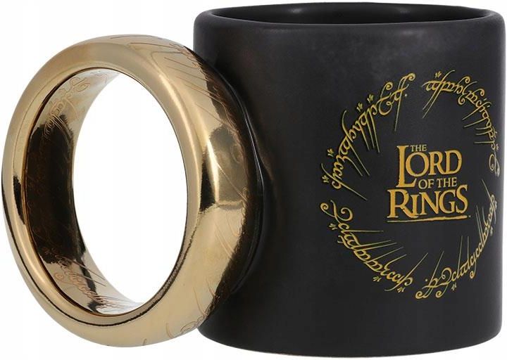 Lord of the Rings The One Ring Shaped Mug / kubek 3D Władca Pierścieni - One Ring Odkryj moc Śródziemia z wyjątkowym kubkiem 3D – Jedyny Pierścień inspirowanym kultową sagą Władca Pierścieni! Ten niezwykle efektowny ceramiczny kubek o pojemności 500 ml został wykonany z dbałością o każdy szczegół i ozdobiony logiem filmowej trylogii. Jego uchwyt w kształcie legendarnego Pierścienia z elficką inskrypcją sprawia, że każdy łyk napoju nabiera magicznego charakteru. Produkt został zapakowany w kolekcjonerskie pudełko typu Gift Box z grafiką nawiązującą do filmów, dzięki czemu świetnie sprawdzi się jako prezent dla fana świata J.R.R. Tolkiena. To oficjalnie licencjonowany produkt, który zachwyci kolekcjonerów, miłośników fantasy i każdego, kto pragnie mieć w domu swój własny „skarb”. Materiał: ceramika Pojemność: ok. 500 ml Uchwyt w kształcie Pierścienia z elficką inskrypcją Opakowanie: kolorowy Gift Box Oficjalnie licencjonowany produkt The Lord of the Rings Uwaga: nie nadaje się do zmywarek i mikrofalówek Władca Pierścieni to legendarne dzieło J.R.R. Tolkiena, które ukształtowało gatunek fantasy na całym świecie. Opowiada o epickiej walce dobra ze złem i podróży Hobbita, który musi zniszczyć potężny Pierścień Władzy. Śródziemie, pełne elfów, krasnoludów, czarodziejów i ludzi, zachwyca bogactwem kultur, języków i historii. Postać Jedynego Pierścienia symbolizuje potęgę, pokusę i cenę władzy – motyw, który do dziś fascynuje fanów. Filmowa adaptacja Petera Jacksona wyniosła tę opowieść na szczyt popkultury, zdobywając Oscary i serca milionów widzów. Jeden kubek, by rządzić wszystkimi – Jedyny Pierścień w Twoich rękach!
