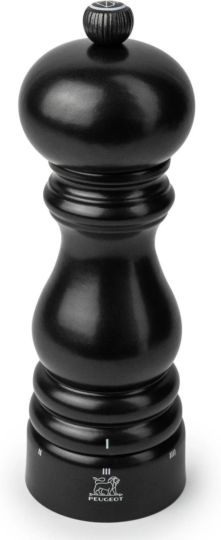 PEUGEOT to jedna z najbardziej rozpoznawalnych marek pochodzących z Francji produkty tej marki stanowią klasyczną ozdobę eleganckich stołów i są nieodzownym elementem warsztatu renomowanych kucharzy. ► PARIS Młynek do pieprzu 18 cm satynowa czerń, u-se Design PARIS o wykończeniu satynowym jest ponadczasowym wzorcem nowoczesnych młynków, które znaleźć można zarówno w profesjonalnych kuchniach, jak i na zwykłych kuchennych blatach. Te rozpoznawalne na całym świecie młynki stały się symbolem prostego, a zarazem wyrafinowanego stylu kulinarnej sztuki. Ich satynowe wykończenie stanowi doskonałe dopełnienie eleganckiego stołu.Młynki PARIS są nie tylko wyrazem dziedzictwa firmy PEUGEOT jako producenta młynków, ale także współczesną reinterpretacją klasycznego kształtu, który od dawna jest symbolem tej marki.Młynki firmy PEUGEOT używane są w kuchniach na całym świecie przez niemal 200 lat i stały się ikoną sztuki kulinarnej we francuskiej kuchni. Większość procesu produkcyjnego odbywa się w fabryce PEUGEOT w Quingey, położonej w departamencie Doubs w Burgundii. Peugeot kontroluje cały proces produkcji mechanizmów mielących, dlatego też oferuje dożywotnią gwarancję na ich niezawodność. Młynki Peugeot posiadają autorskie mechanizmy mielące dostosowane do różnych rodzajów przypraw. Młynki do soli mogą obsługiwać soli gruboziarnistej, morskiej i kamiennej o granulacji do 4 mm. Natomiast młynki do pieprzu wyposażone są w specjalny mechanizm o spiralnym kształcie żaren, gwarantujący optymalne mielenie ziaren. Grubość mielenia w młynkach PEUGEOT można regulować tradycyjnie lub, w przypadku młynków z mechanizmem uSelect, wybierając jeden z sześciu stopni mielenia.Firma Peugeot kieruje swoją uwagę na odpowiedzialną politykę ekologiczną, stosując certyfikowane drewno z lokalnych lasów regionu Franche-Comte i używając przyjaznych dla zdrowia i środowiska farb i lakierów na bazie wody do wykończenia obudów młynków.Mechanizm uSelect to opatentowane rozwiązanie Peugeota, które pozwala na precyzyjne dostosowanie grubości mielenia poprzez wybór jednego z sześciu predefiniowanych stopni. To innowacyjne rozwiązanie jest dostępne w wybranych modelach zarówno manualnych, jak i elektrycznych młynków Peugeot. ► Cechy produktu: - Młynek ręczny- Wykonany z drewna pozyskiwanego z francuskich lasów certyfikowanych przez PEFC- System regulacji mielenia u'Select z sześcioma różnymi ustawieniami mielenia- Wykończenie farbą i lakierem na bazie wody – przyjazne dla zdrowia i środowiska naturalnego- Mechanizm mielący objęty dożywotnią gwarancją- Drewno zostało wytoczone na gładką powierzchnię- Młynek przeznaczony do mielenia czarnego, białego, zielonego i czerwonego pieprzu (o ile jego zawartość w mieszance nie przekracza 15% ogółu) oraz nasion kolendry- W zestawie dołączone są ziarenka pieprzu- wyprodukowano we Francji  ► O marce Peugeot: PEUGEOT to jedna z najbardziej rozpoznawalnych marek pochodzących z Francji, silnie zakorzeniona w bogatej historii kraju. Młynki marki Peugeot stanowią klasyczną ozdobę eleganckich stołów i są nieodzownym elementem warsztatu renomowanych kucharzy.Historia tej wyjątkowej marki rozpoczęła się w XIX wieku. Ostrza, młynki do kawy, rowery, samochody, młynki stołowe... Dzięki inżynieryjnej pomysłowości Peugeot zawsze stał na czele innowacji!Peugeot jestniekwestionowanym liderem w produkcji młynków do przypraw i kawy. Ciągle doskonali ich konstrukcję, tworząc narzędzia do kreowania smaków, dostarczając przyjemności i nowych doznań dla wyrafinowanego podniebienia koneserów.