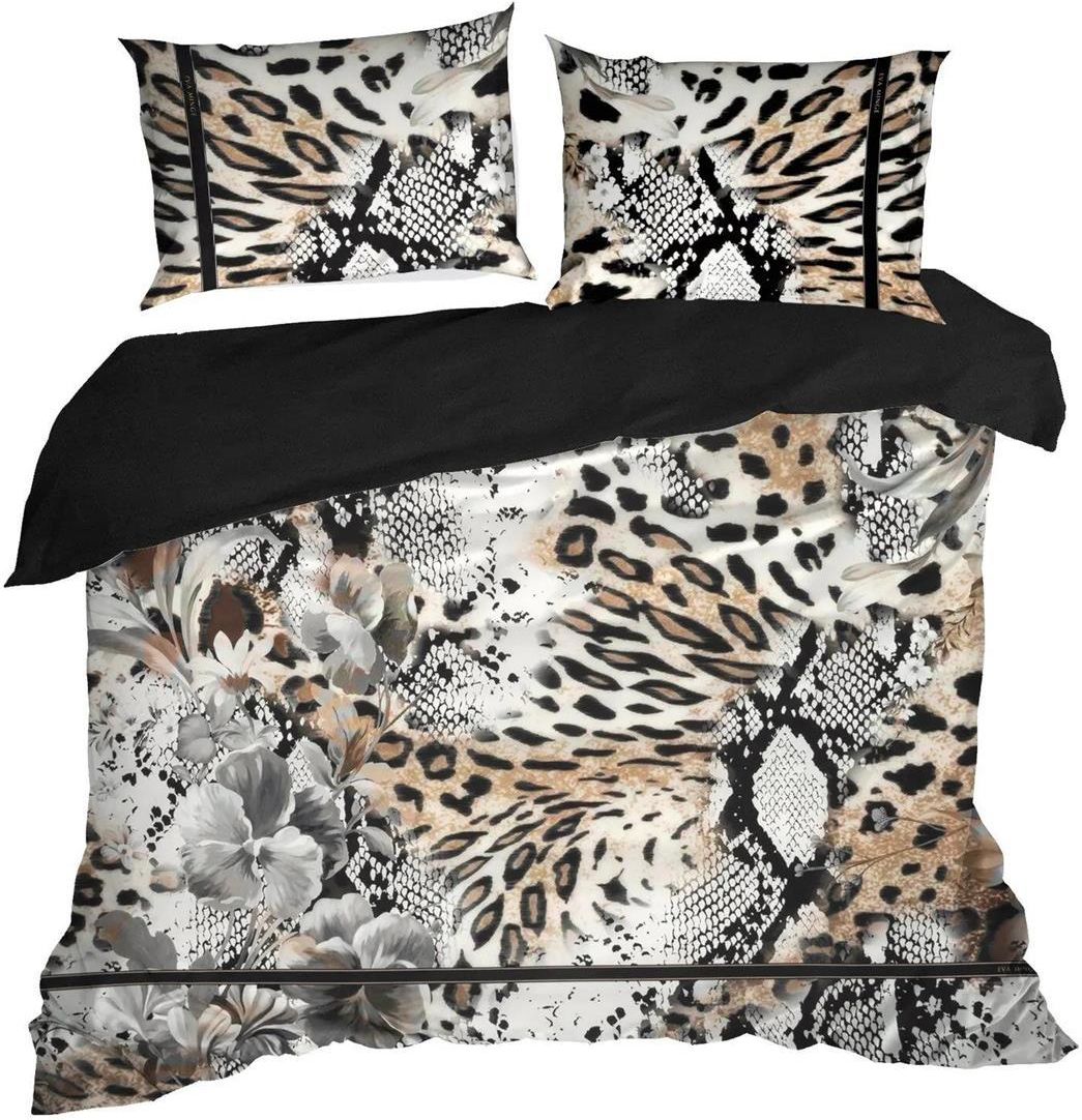 Pościel satynowa EVA 140x200 Eva Minge Eurofirany jasnobrązowa czarna zwierzęcy print cętki Chorzów