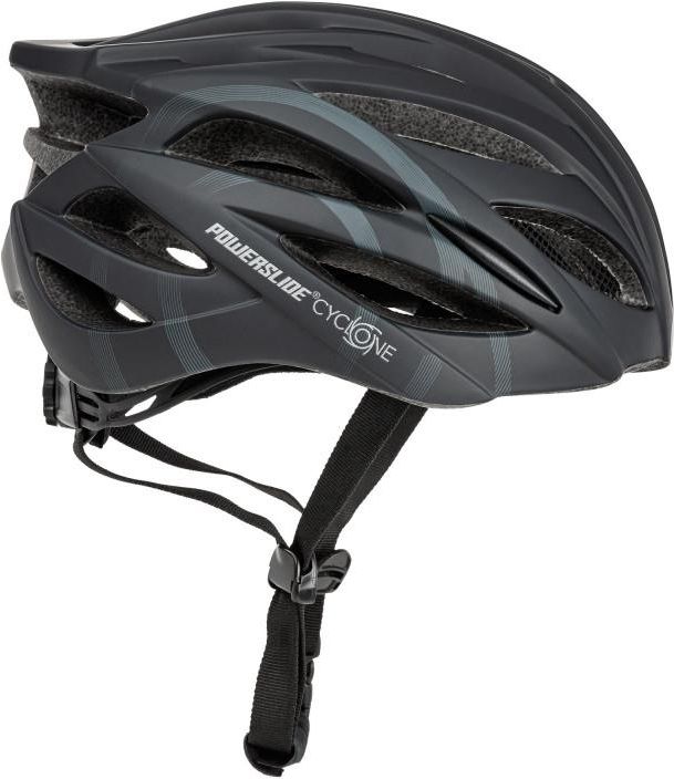 Powerslide Cyclone to aerodynamiczny kask przeznaczony do jazdy szybkiej. Zaprojektowany tak, aby zapewnić optymalne chłodzenie podczas treningów, wyścigów i bicia rekordów, Cyclone stał się wyborem najlepszych zawodników jeżdżących w barwach Powerslide. Miłym akcentem jest siatka wbudowana w przednie otwory wentylacyjne – dzięki niej, do kasku nie wpadnie Wam żaden owad. Kask jest produkowany w technologii in-mold z zewnętrzną powłoką z materiału PVC, pod którą znajduje się spieniony polistyren. Wyściółka z pianek EVA zapewnia wysoki poziom komfortu. Kask jest lekki i dostępny w dwóch rozmiarach, które można dopasować do głowy za pomocą pokrętła.