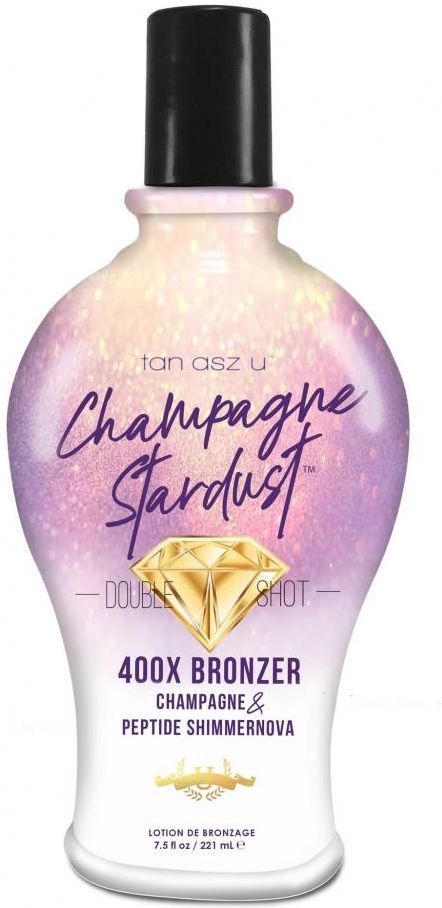 Tan Asz U Champagne Stardust Bronzer 221ml Lśnij tajemniczym gwiezdnym blaskiem rozświetlającym nocne niebo. Zapomnij o drugoplanowych rolach - wchodząc do pokoju, natychmiast staniesz się prawdziwym centrum wszechświata. Pomimo swojego efektownego przybycia, będziesz emanować elegancją dzięki świetlnym refleksom delikatnie tańczącym po twojej lśniącej, opalonej skórze, przyćmiewając wszystkich wokół. 400X Double Shot gwarantuję pożądany kolor skóry Glamorous Nano Shimmernova wykorzystuje nową technologię migotania, aby uzyskać ultra elegancki blask Ekstrakt szampana i peptydy - dla skóry pięknej z wyglądu i delikatnej w dotyku. Unikalny miks kosmetyczny pozwala na używanie balsamu, by wzmocnić kolor między sesjami, lub na specjalną okazję. Zapach: Champagne & Pomegranate Petal Pojemność: 221ml