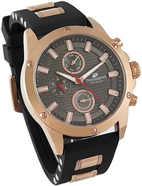 Sportowy design zegarka w klasycznej okrągłej kopercie. Dodatki z w kolorze czerwonego złota dodają zegarkowi nowoczesnego charakteru. Pasek wykonany jest z wysokiej jakości miękkiej gumy, która w dotyku jest przyjemna i delikatna. Na tarczy zegarka oprócz czasu wskazywany jest również dzień tygodnia, dzień miesiąca oraz zegar dwudziestoczterogodzinny.