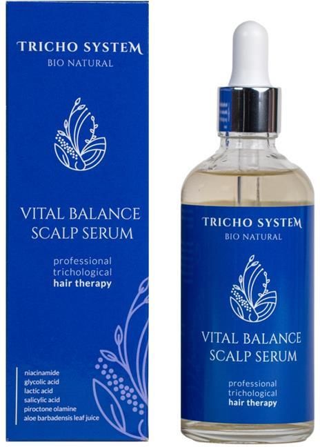 Serum Tricho System Vital Balance Scalp Trychologiczna wcierka do skóry głowy – Idealne Rozwiązanie dla Zdrowej Skóry i Włosów! Innowacyjne serum na skórę głowy z niacynamidem, kwasami: mlekowym, glikolowym, cytrynowym, jabłkowym, salicylowym, sokiem z liści aloesu, pantenolem oraz ekstraktami …