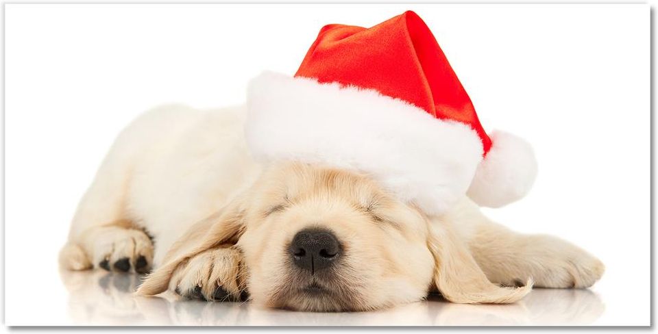 Tulup.Pl Obraz Szklany Szczeniak Czapka Mikołaja Zima 125x50 cm 4 zawieszki (OSH2S35497266) Chorzów