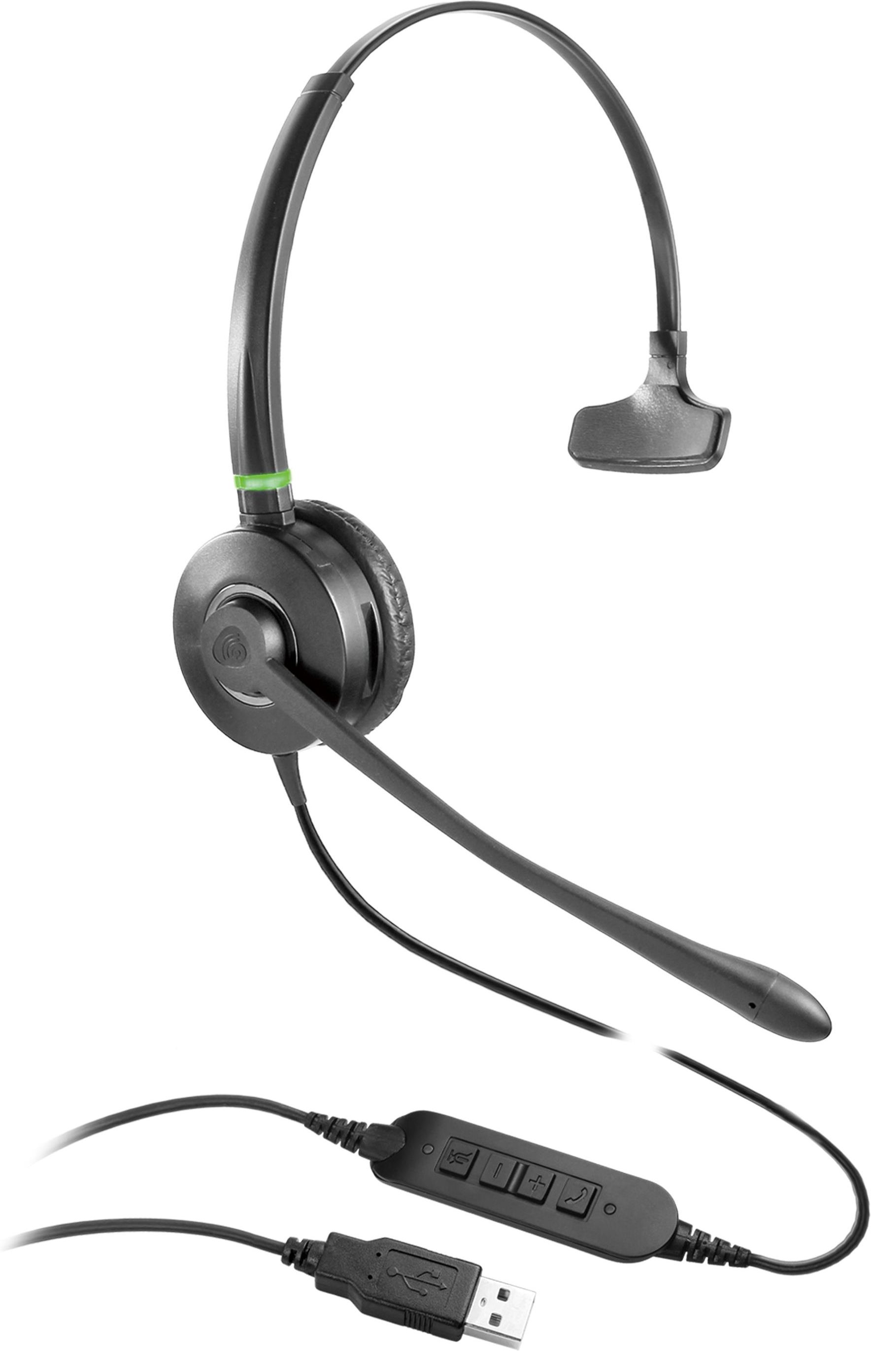VBET Jednouszny przewodowy zestaw słuchawkowy VT6909 USB Profesjonalny zestaw słuchawkowy USB dedykowany dla biznesu, o zwiększonej wytrzymałości VT6909 USB LED LIGHT to wysokiej jakości słuchawka nagłowna jednouszna na złącze USB o zwiększonej wytrzymałości dla wymagających użytkowników. Zapewnia komfortowe użytkowanie w całodziennej pracy. Panel sterujący na kablu umożliwia regulację głośności, wyłączenie mikrofonu, odbieranie/zakończenie rozmowy, a dioda LED pokazuje status dostępności poprzez zielony i czerwony kolor. Złącze USB Dioda pokazująca status dostępności Możliwość podłączenia do PC i softhphona (Skype For Business), Microsoft Lync, Avaya, Cisco, 3CX Panel sterujący na kablu Pokrycie muszli słuchawek: ekoskóra i gąbka Mikrofon wygłuszający 80% hałasu otoczenia Technologia ochrony słuchu Actve Protection Regulowane ramię mikrofonu (300 stopni) Poszerzone pasmo przenoszenia dźwięku (150Hz - 6.8kHz) Technologia przetwarzania dźwięku DSP