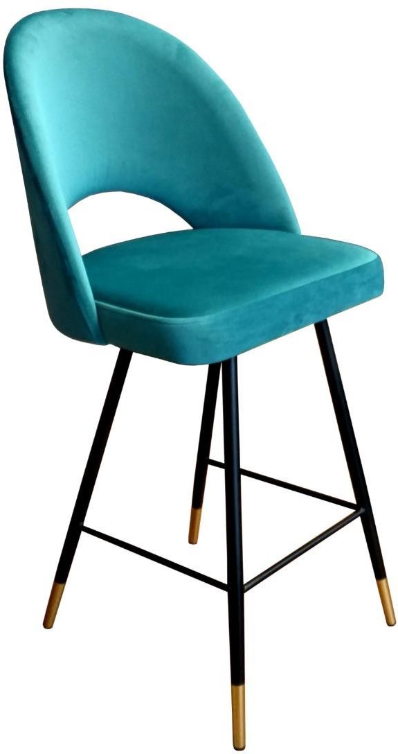 Hoker ISKAR VELVET GOLD morski to wyjątkowy hoker kuchenny tapicerowany miękką tkaniną aksamitną z kubełkowym oparciem na metalowych czarnych nogach, dfoskonały do nowoczesnych salonów, kuchni oraz barów.