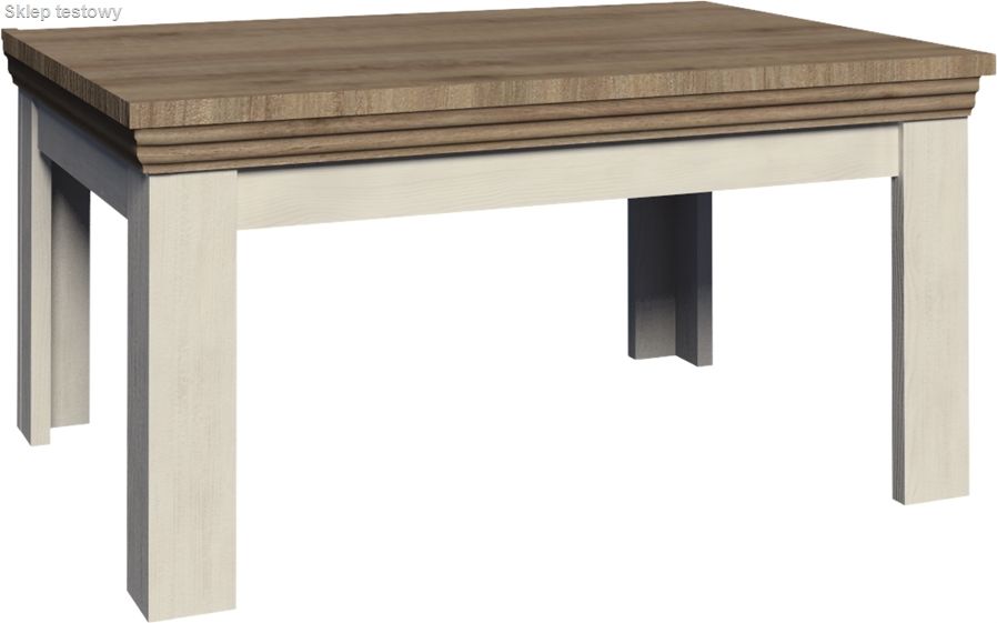 Elegancki stolik Royal. Kolorystyka białego, szczotkowanego drewna sosny nordyckiej w połączeniu z dębem dzikim podkreśla szlachetny charakter mebla.
