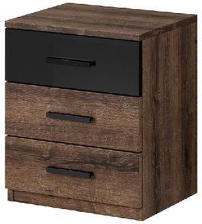 Stolik nocny GALAXY typ 22 Helvetia Praktyczna i stylowa szafka nocna Galaxy idealnie dopasowana do łóżka z tej samej kolekcji. Posiada 3 szuflady, które zapewnią wiele miejsca do przechowywania podręcznych przedmiotów. Na stoliku z powodzeniem można ustawić lampkę nocną i inne drobiazgi. Kolor: dąb monastery (płyta laminowana) + czarny (płyta polygloss) Wymiary: Szerokość - 46 cm Głębokość - 41 cm Wysokość - 56 cm Meble wysyłamy w paczkach do samodzielnego montażu. Kolekcja Galaxy to meble stworzone z myślą o eleganckiej i stylowej sypialni. Połączenie głębokiego kolory dąb monastery wraz z czarną, połyskującą powierzchnią dało nieco awangardowy, lecz bardzo niebanalny wygląd. Zestaw Galaxy umożliwia umeblowanie całej sypialni. W jej skład wchodzą szafy, łóżka, komoda, oraz stolik nocny.