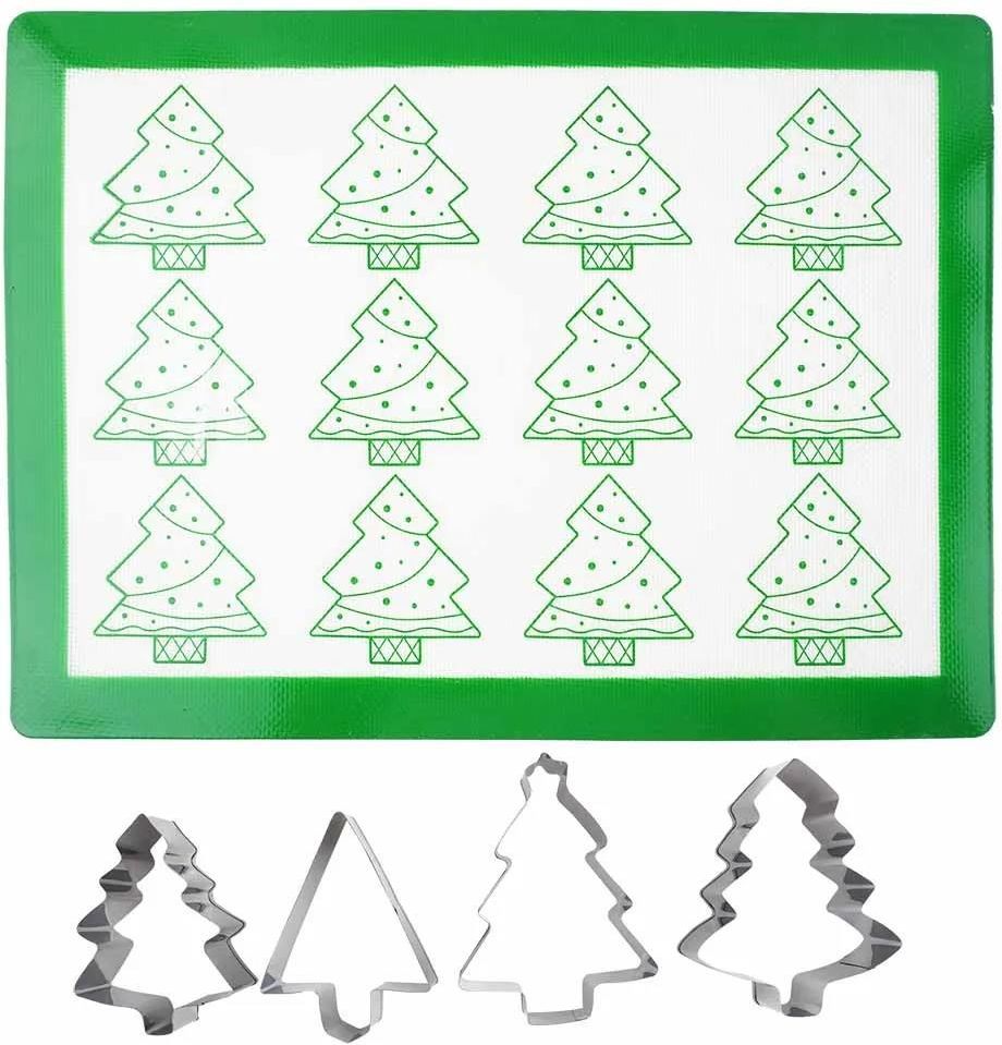 Akcesoria do pieczenia świąteczne 02070151077 Kolor: Biały, Zielony, Srebrny Materiał: Silikon, Stal nierdzewna Marka: Altom Design Zastosowanie maty: Piekarnik (do 230°C) Skład zestawu 1 x mata silikonowa: długość: 35 cm, szerokość: 28 cm 4 x foremka do ciastek Dlaczego warto kupić? …
