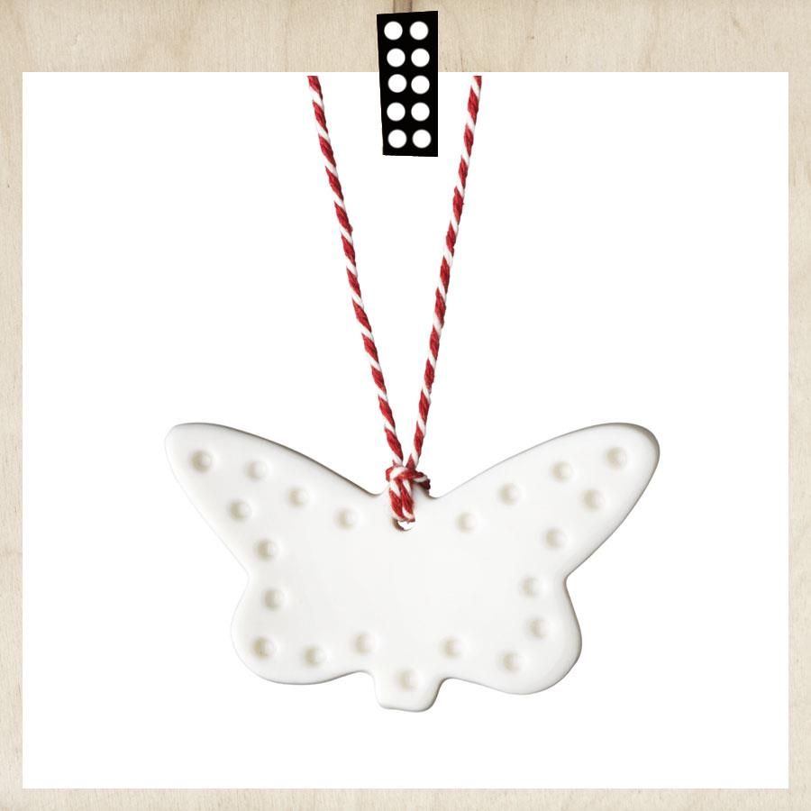 Porcelanowe motyle. Małe, świąteczne dzieła sztuki od Anne Black. Jej ozdoby są urocze i delikatne, wykonane ręcznie z porcelany. Docenią je Ci, którzy kochają skandynawskie wzornictwo. Polecamy nie tylko na choinkę. Będą pięknie wyglądać jako zawieszki na drzwiach, uchwytach od szaf, w oknie... …