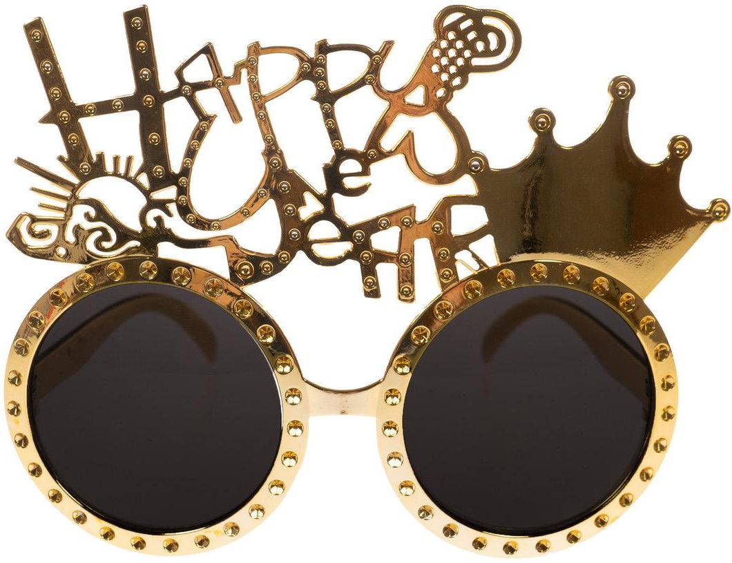 Zabawne okulary sylwestrowe z napisem "Happy New Year" w ich górnej części. Doskonały dodatek na imprezy sylwestrowe oraz zabawy karnawałowe. Produkt wykonany z tworzywa sztucznego. Wymiary okularów: 15 x 11,5 cm. EAN: 5902934238786