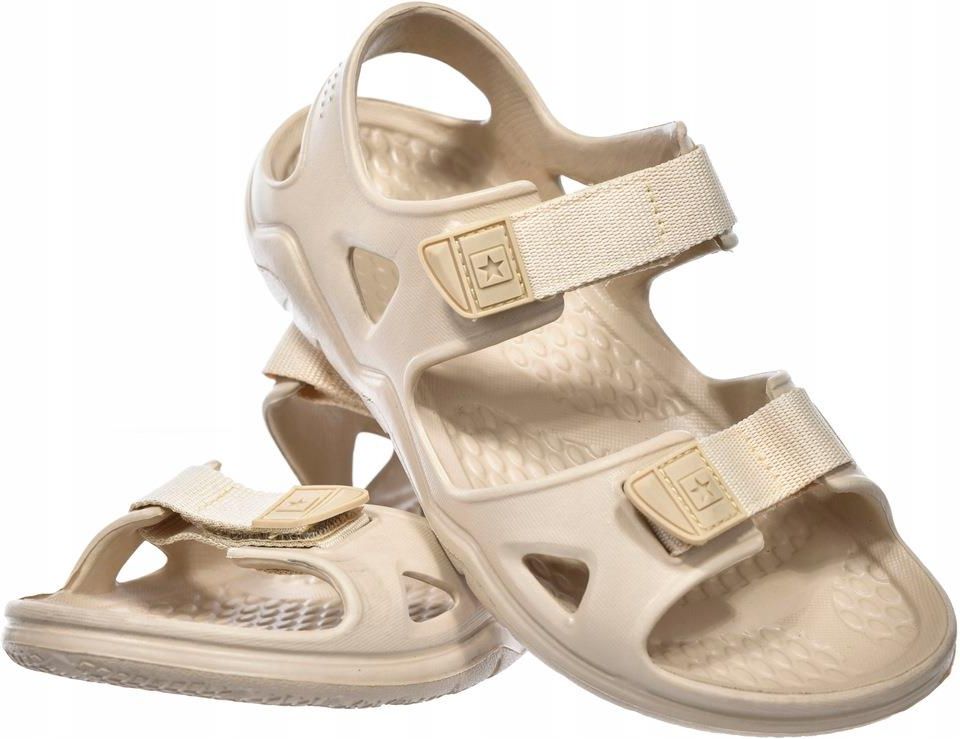 Damskie sandały firmy BIG STAR model: RR274A515 kolor: beżowy Damskie sandały marki Big Star to idealne rozwiązanie na ciepłe, letnie dni. Wykonane z lekkiego, piankowego tworzywa, zapewniają wygodę i swobodę ruchu w każdej sytuacji. Podwójne zapięcie na rzep umożliwia szybkie dopasowanie obuwia do stopy, gwarantując komfort oraz stabilność podczas chodzenia. Elastyczna piankowa podeszwa dodaje sandałom lekkości, a jednocześnie skutecznie tłumi wstrząsy, co czyni je doskonałym wyborem zarówno na plażę, jak i na długie spacery. Brak wyściółki i zastosowanie materiałów łatwych w czyszczeniu sprawia, że model ten świetnie sprawdza się również w bardziej wymagających warunkach letniego wypoczynku. Dzięki swojej funkcjonalności i prostemu designowi, sandały te pasują do wielu codziennych stylizacji – od sportowych po casualowe. To praktyczne, wygodne obuwie, które sprawdzi się zarówno w mieście, jak i na wakacjach. Szczegóły produktu: Materiał zewnętrzny: pianka Materiał wkładki: pianka Typ zapięcia: podwójne rzepy Rodzaj obcasa: brak Wysokość podeszwy: 2,5 cm Ocieplenie: brak Wyściółka: brak Rozmiar - długość wkładki 36 / 23,5 37 / 24,0 38 / 25,0 39 / 25,5 40 / 26,0 41 / 27,0 Podane długości wkładek mogą różnic się +/- 2mm
