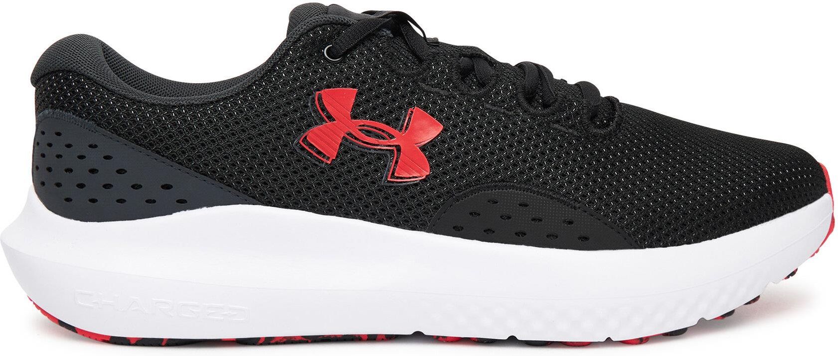 Męskie buty do biegania Under Armour UA Charged Surge 4 - czarne Symbol: 3027000-005-8 Marka: UNDER ARMOUR Sugerowana cena detaliczna: 259.99 Kod EAN: 198632888223 Te buty są amortyzowane i wygodne, ale także lekkie i oddychające. Dlaczego? Abyś nigdy nie musiał zwalniać w trakcie biegu. Buty do biegania męskie UA to wytrzymały model do regularnych treningów na długich dystansach (powyżej 40 kilometrów tygodniowo, treningi biegowe kilka razy w tygodniu). Buty biegowe Under Armour 3027000 w kolorze czarnym to model dla biegaczy z neutralną pronacją. Model neutralny to idealny wybór dla osób, które nie potrzebują dodatkowej stabilizacji i wsparcia stopy w trakcie ruchu. Buty sportowe Under Armour posiadają niski profil cholewki wykonanej z siateczki tekstylnej, dzięki czemu są wygodne i przewiewne Zastosowany materiał zapewnia odpowiednią Męskie buty Under Armour do biegania - z technologicznym wsparciem: absorpcja energii, dynamiczne odbicie Buty biegowe dla mężczyzn UA zostały wyposażone w podeszwę wykonaną w technologii Charged Cushioning , która pochłania energię podczas kontaktu stopy z podłożem, pozwalając na dynamiczne odbicie. Zwiększa dzięki temu elastyczność ruchu i komfort podczas biegu . Buty Under Armour do biegania - z niezawodnymi detalami: syntetyczne nakładki zwiększają trwałość, wygodna wkładka o wysokim dopasowaniu Klasyczne sznurowanie. Specjalnie zaprojektowany, wyściełany język zapewnia stabilizację i zmniejsza nacisk na śródstopie. Język z przewiewnej siateczki zapewnia dodatkową oddychalność i umożliwia wygodne dopasowanie. Doskonała wygoda i dopasowanie dzięki wyściełanemu kołnierzowi. Strategicznie rozmieszczone syntetyczne nakładki zwiększają trwałość i ochronę w obszarach narażonych na ścieranie. Wkładka Deluxe Comfort System dopasowuje się do stopy, zapewniając najwyższy komfort . Buty sportowe do biegania męskie posiadają podeszwę środkową z pianki EVA, która zapewnia lekkie i dynamiczne wybicie, jednocześnie skutecznie amortyzuje uderzenia. Czarne sneakersy sportowe dla mężczyzny Under Armour UA Charged Surge 4 - szczegółowe cechy: but o podeszwie neutralnej niski profil cholewki lekka cholewka wykonana z przewiewnej siateczki tekstylnej, która zapewnia wygodę oraz odpowiednią wentylację stopy klasyczne sznurowanie specjalnie zaprojektowany, wyściełany język zapewnia stabilizację i zmniejsza nacisk na śródstopie język z przewiewnej siateczki zapewnia dodatkową oddychalność i umożliwia wygodne dopasowanie wygoda i dopasowanie dzięki wyściełanemu kołnierzowi strategicznie rozmieszczone syntetyczne nakładki zwiększają trwałość i ochronę w obszarach narażonych na ścieranie wkładka Deluxe Comfort System dopasowuje się do stopy, zapewniając najwyższy komfort . gumowa podeszwa zewnętrzną, która zapewnia odpowiednią przyczepność i trwałość. podeszwa środkowa Charged Cushioning® zapewnia doskonałą responsywność, wsparcie i wygodę podczas biegu drop: 8 mm waga: 284,9 g