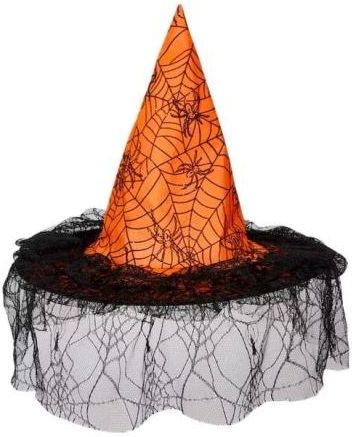 Kapelusz czarownicy Halloween 30 cm Pomarańcz Przerażający kapelusz czarownicy, to idealny dodatek na imprezę halloweenową. Pokaż, kto rządzi w Halloween za pomocą tego strasznego kapelusza dla wiedźmy Idealne przepranie na Halloween. Ubierz się stylowo na Halloween w odświętny kapelusz czarownicy. Z czarnym tiulem, dzięki czemu jest jeszcze bardziej przerażająca Ze wzorem pajęczyny Specyfikacja: Bardzo miękki i delikatny tiul Stylistyczny średnica kapelusza 40cm kolor: pomarańczowy średnica otworu ok. 19,5 cm