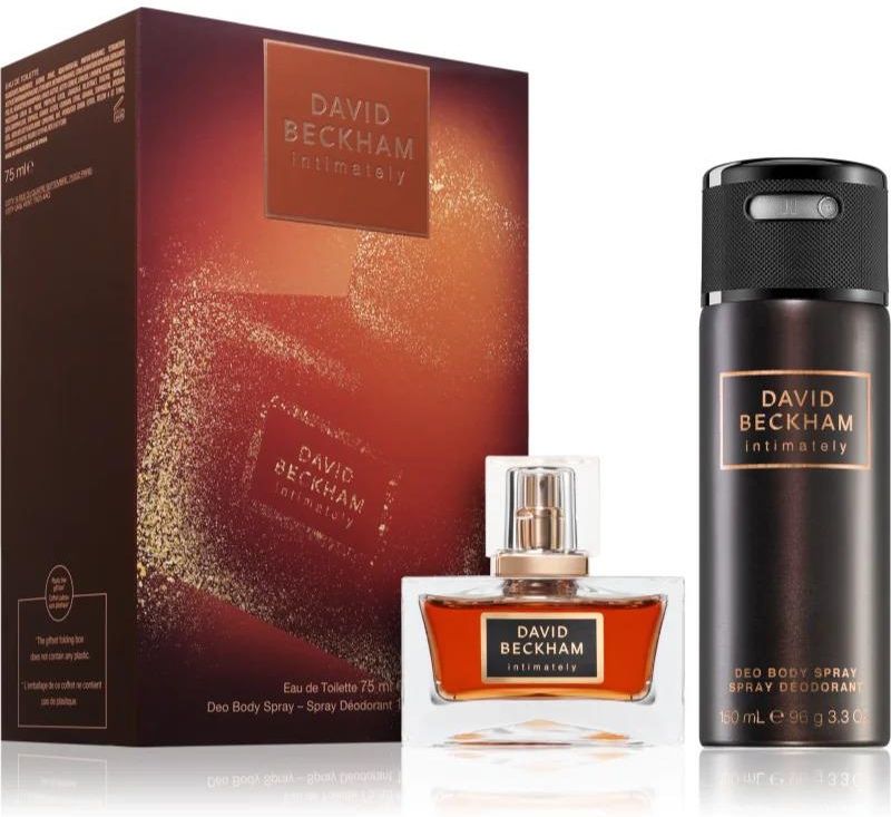 David Beckham Intimately Men, 2 szt., Zestawy dla mężczyzn dla mężczyzn, Luksusowy zapach to zawsze właściwy wybór dla tych, którzy pragną podarować prawdziwe szczęście, a zestaw perfum męskich David Beckham Intimately Men w pięknym opakowaniu to radość ukryta w wielu flakonikach. Postaw na czar idealnie dopasowanego zestawu i miej pewność, że wybrałeś doskonały prezent. Właściwości: kosmetyki perfumowane przedłużają trwałość zapachu rozgrzewająca kompozycja zapachowa, doskonała na chłodniejsze miesiące doskonały pomysł na prezent Zawartość zestawu: David Beckham Intimately Men woda toaletowa 75 ml David Beckham Intimately Deodorant dezodorant w sprayu 150 ml