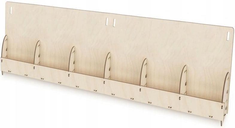 Deku - Drewniany stojak na ulotki z niskim frontem- do składania DLx6 65,5x22,5x12 cm 570375 Stojak wykonany jest ze sklejki brzozowej za pomocą lasera CNC. Sklejka posiada atest higieniczny. W górnej części znajdują się otwory, co umożliwia powieszenie stojaka na ścianie lub na specjalnie …