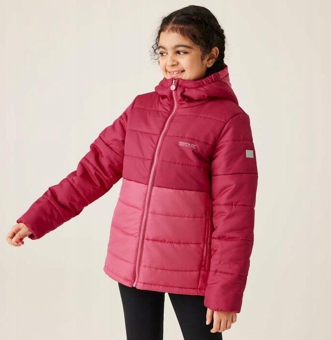 Dziecięca kurtka puchowa firmy REGATTA model: RKN157 OW2 kolor: czerwony Ocieplana kurtka dziecięca Lofthouse VIII to idealny wybór na każdą pogodę! Wykonana z 100% poliestru z recyklingu, oferuje nie tylko stylowy wygląd, ale także długotrwałą ochronę przed deszczem dzięki wodoodpornej powłoce. Kurtka puchowa z wypełnieniem o wysokiej gramaturze – większe zabezpieczenie przed utratą ciepła. Hydrofobowe wykończenie zabezpieczy przed lekkim deszczem oraz śniegiem. Syntetyczna, puchowa, izolacja zapewni komfort cieplny podczas chłodniejszych jesiennych dni. Ekologiczny wybór: tkanina wykonana w 100% z materiałów pochodzących z recyklingu to doskonały wybór dla świadomych rodziców dbających o środowisko. Idealna do szkoły i na weekendowe wyprawy: kurtka Lofthouse VIII sprawdzi się doskonale zarówno na co dzień, jak i podczas weekendowych przygód na świeżym powietrzu. Szczegóły produktu: materiał główny: poliester Izolacja Thermoguard: Gwarantuje ciepło i wygodę, nawet w chłodniejsze dni. Praktyczne Wykończenie: Zintegrowany kaptur z elastycznym ściągaczem oraz mankiety ze ściągaczem zapewniają doskonałe dopasowanie. Bezpieczeństwo: Odblaskowe wykończenia 360° zwiększają widoczność, co jest szczególnie ważne podczas wieczornych spacerów. Funkcjonalność: Dwie dolne kieszenie na zamek pomieszczą wszystkie niezbędne drobiazgi, a osłona zamka błyskawicznego chroni przed wiatrem. Etykieta na Imię: Ułatwia personalizację kurtki.