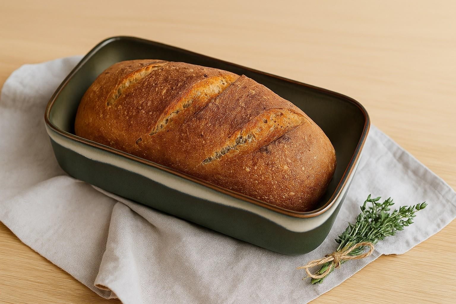 Podłużna forma do pieczenia chleba Ombres, marki MPLCo. Cechy produktu Materiał: ceramika Kolor: ciemny niebieski Wymiary: wysokość 8 cm, długość 26 cm, szerokość 14 cm, pojemność 1,5 L Nadaje się do wypiekania pieczywa, pozwala na różnorodność!Chrupiące na zewnątrz, soczyste i miękkie w środku.Z orzechami, nasionami i pestkami lub w czystej postaci.Wykonane z żyta, pszenicy lub pełnego ziarna. Ponadto forma do pieczenia chleba nadaje się szczególnie do wypieku chleba na zakwasie, jest odporna na temperaturę do +220 °C i stanowi atrakcyjny element wizualny. Dzięki formie do pieczenia chleba możesz zabrać ten aromat do domu – kiedykolwiek i tak często, jak chcesz. Chleb jest równomiernie zrumieniony i można go łatwo wyjąć z formy dzięki doskonałym właściwościom zapobiegającym przywieraniu. Linia OMBRES to wyjątkowa kolekcja ceramiki, dostępna w szerokiej gamie kolorystycznej, która doskonale sprawdza się w pieczeniu, zapiekaniu oraz serwowaniu potraw. Każdy element tej serii wyróżnia się niepowtarzalnym wyglądem – żadne dwa produkty nie są identyczne. Dzięki unikalnej technice barwienia kolory płynnie się ze sobą łączą, tworząc efektywną mozaikę. Kolekcja OMBRES obejmuje różnorodne elementy, które doskonale łączą estetykę z funkcjonalnością, a ich wszechstronność pozwala na wykorzystanie zarówno w piekarniku, jak i w kuchence mikrofalowej. Zasady użytkowania Mycie: Można myć w zmywarce. Suszenie: Należy dokładnie osuszyć po umyciu. Unikanie: Należy unikać nagłych zmian temperatury oraz kontaktu z ostrymi przedmiotami, które mogą uszkodzić powierzchnię ceramiki. Produkt przystosowany do kontaktu z żywnością. Można stosować w piekarnikach. Oferta dotyczy 1 szt. miseczki. Wszelkie inne dodatki widoczne na zdjęciach służą celom dekoracji. Każde naczynie różni się odcieniem lub zdobieniem ze względu na zindywidualizowaną technologię produkcji zastawy. Dzięki takiemu rozwiązaniu zastawę można skomponować wg własnego uznania.