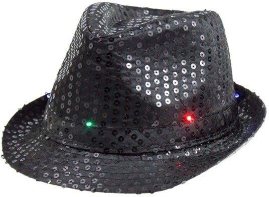 KAPELUSZ ŚWIECĄCY CZARNY Długość: 28,5 cm Szerokość: 24 cm Średnica: 16 cm Wysokość: 11 cm Kolor: czarny. Kapelusz w całości obszyty jest cekinami w kolorze czarnym. Posiada diody świecące w trzech kolorach jednocześnie. Kolory diód: zielony, niebieski, czerwony. W środku kapelusza znajduje się …