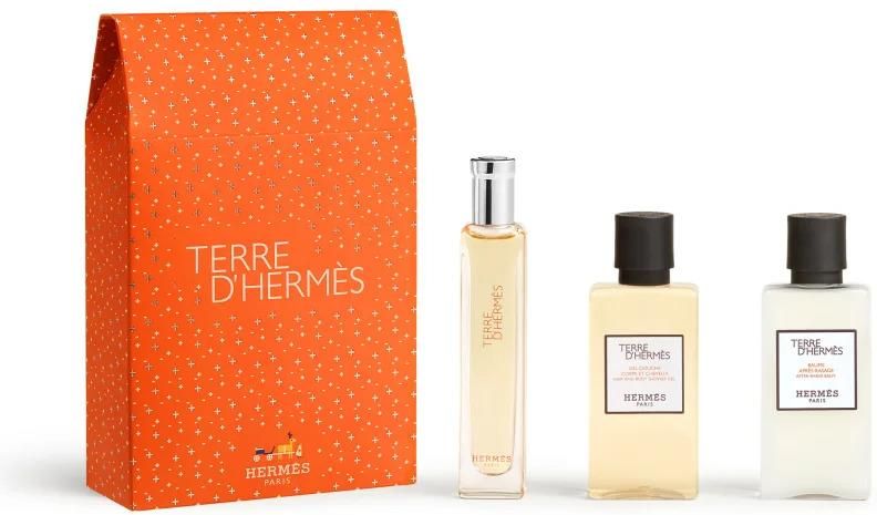 HERMÈS Terre d’Hermès Celebrating with Hermès, , Kosmetyki pod prysznic dla mężczyzn, Szukasz idealnego prezentu dla swojej drugiej połówki, brata, taty, a może przyjaciela? Zestaw perfum dla mężczyzn HERMÈS Terre d’Hermès Celebrating with Hermès z pewnością ucieszy każdego mężczyznę. Podaruj swoim bliskim zestaw, który zawiera nie jedną, a kilka pachnących niespodzianek. Właściwości: kosmetyki perfumowane przedłużają trwałość zapachu doskonały pomysł na prezent zawiera mini-wersje produktów Zawartość zestawu: HERMÈS Terre d’Hermès woda toaletowa 15 ml HERMÈS Terre d’Hermès żel pod prysznic 40 ml HERMÈS Terre d’Hermès balsam po goleniu 40 ml