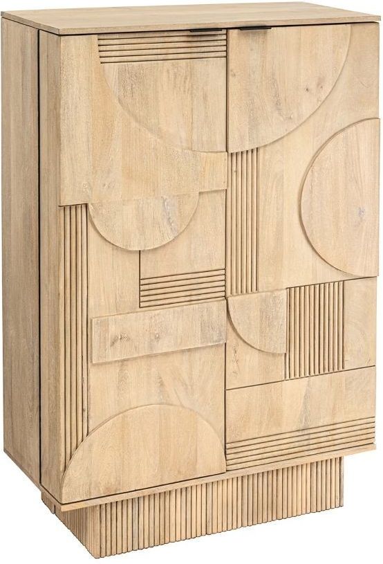 BAREK ART DECO 95X42 CM MANGO BIELONE Barek ART DECO to mebel o bardzo eleganckim wyglądzie, który idealnie doda Twojemu salonowi niesamowitego uroku. Mebel ten wykonany został z litego drewna mango, którego bielony front zdobi dekoracja optyczno-geometryczna 3D z wstawkami w formie pionowych oraz …