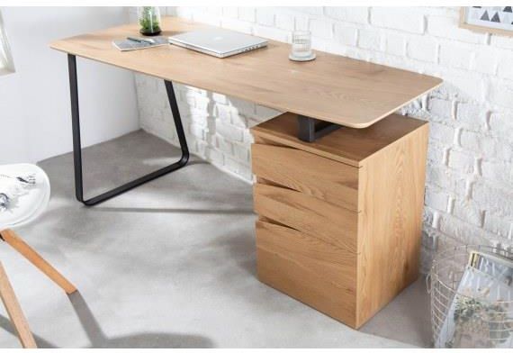 BIURKO STUDIO 160X49 CM To stylowe, nowoczesne asymetryczne biurko postawione jest na jednej ze stron na stabilnej czarnej metalowej podstawie, z drugiej strony jego podstawę stanowi kontener posiadające trzy szuflady. Blat wykonany został z płyty MDF oklejonej imitacją dębu w kolorze naturalnym. Te trzy pojemne, funkcjonalne szuflady przystosowane są głównie do przechowywania przedmiotów biurowych. Połączenie blatu z czarną podstawą oraz asymetrią tego biurka sprawia, że efekt końcowy jest fenomenalny. Mebel ten idealnie będzie pasować do nowoczesnego biura, gabinetu czy pracowni nadając mu wyjątkowy klimat w stylu industrialnym. W całej serii STUDIO występują sofy, lampy, regały, komody biurka oraz stoliki kawowe o różnych podstawach, wymiarach i kolorach. Produkt jest wykonany z surowców naturalnych, przez co może różnić się od prezentowanych zdjęć. Wszystkie przetarcia, szczeliny oraz nierówności są zamierzone. Każdy produkt jest przez to unikalny i oryginalny. Invicta Interior to niezawodny dostawca ekskluzywnych designerskich mebli i akcesoriów domowych. Jest to dynamiczna i doświadczona firma z wieloletnimi międzynarodowymi kontaktami i stale poszukującą nowych produktów i innowacyjnych pomysłów. Dojrzała ogólna koncepcja firmy pozwala zaoferować klientom duży wybór nowoczesnych i klasycznych mebli o wyjątkowej jakości w rozsądnych cenach. Invicta Interior monitoruje wszystkie aktualne trendy w branży meblowej, dlatego klienci zawsze otrzymują najnowsze i najwyższej jakości designerskie meble.