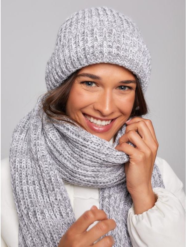 Czapka i szalik Przepiękny, obszerny model zachwyci każdą osobę – komplet czapka/szalik jest mięsisty, puchaty i ciepły. Materiał nie gryzie, a w dodatku pasować będzie nie tylko do eleganckich stylizacji, ale i do sportowych – na tym polega jego ponadczasowość. Wielki szal opatuli każdego zmarzlucha, a najmodniejszy krój czapki uzupełni niejeden zimowy outfit! Skład: 100% akryl Kolor: jasnoszary Wymiary szalika: 30 cm x 165 cm Gwarancja: 2 lata Producent: Sabfil Wyprodukowane w Polsce