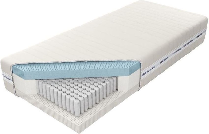 Materac VENUS TALALAY BLUE X7 - Aloe Vera 180x200 KOŁO Materac o wysokości ok. 30 cm zbudowany jest ze sprężyn 1000S z wysokogatunkowego drutu, umieszczonych w pojedynczych kieszonkach o średnicy 3,9 cm. Takie rozwiązanie poprawia elastyczność i zwiększa punktowe podparcie ciała. Istnieje możliwość wyboru sprężyn jedno lub siedmiopolowych. Materac siedmiopolowy posiada siedem stref twardości utrzymujących poszczególne części ciała. Z jednej strony materaca znajduje się 7,5 cm warstwa lateksu Talalay Blue, posiadającego umiejętność utrzymania równowagi cieplnej. Odpowiednio oddaje lub pobiera energię w zależności od wahań temperatury, eliminując problem z potliwością. Otwartokomórkowa struktura zwiększa poziom cyrkulacji powietrza, zapewnia optymalne podparcie i komfort. Z drugiej strony użyta została 7 cm warstwa naturalnego lateksu Talalay, produkowanego na bazie naturalnego mleczka kauczukowego, o strukturze sprzyjającej wymianie powietrza oraz prawidłowemu ułożeniu kręgosłupa. Wykorzystanie zamka błyskawicznego, który umożliwia zdjęcie i wypranie pokrowca, znacząco ułatwia utrzymanie go w czystości. Najważniejsze cechy materaca Venus Talalay Blue X7: • materac powoduje odpowiednie odprężenie dla osób pocących się w nocy • lateks Talalay doskonale podpiera kręgosłup dopasowując się do ciała użytkownika • lateks Talalay użyty do produkcji materaca jest komponentem przyjazny dla środowiska • jest przewiewny, zachowana jest bardzo dobra cyrkulacja powietrza • zawiera sprężynę typu Multi Pocket - wiele sprężyn o małej średnicy, działających punktowo • ze względu na solidną sprężynę i bardzo elastyczny lateks Talalay materac poradzi sobie ze zróżnicowaną wagą osób śpiących • jest dwustronny, co zwiększa jego trwałość • materac może występować w wersji jednopolowej lub siedmiopolowej • pokrowce na materac można prać • materac wyprodukowano z materiałów posiadających certyfikaty OEKO-TEX oraz PZH - zapewniają one bezpieczeństwo użytkowników, ze szczególnym wskazaniem na alergików i astmatyków. Budowa materaca Venus Talalay Blue X7: • Lateks Blue Intuition - Górną warstwę materaca stanowi 7 cm lateksu Talalay Intuition Blue. Jest to najnowocześniejszy lateks który potrafi regulować gospodarkę cieplną podczas snu. Odpowiednia struktura tego komponentu ma zdolność do pochłaniania nadmiaru ciepła, dzięki czemu materac utrzymuje optymalną temperaturę do spania. Zapewnia on użytkownikowi komfort termiczny, ogranicza pocenie się i redukuje ryzyko przegrzania w nocy. Ponadto jego otwartokomórkowa struktura pozwala na świetną wentylację i bardzo dobrze odprowadza wilgoć. • Sprężyny Multipocket - Środkową warstwę materaca stanowią sprężyny typu Multipocket 1000S, o twardości H2. Tak duża ilość bardzo drobnych sprężyn umożliwia natychmiastowe i stabilne podparcie każdej części Naszego ciała. Działają one niezależnie od siebie, dzięki czemu materac natychmiastowo reaguje amortyzacją tam, gdzie jest to w danym momencie najbardziej potrzebne. • Lateks Vita Talalay - Dolną warstwę materaca stanowi lateks Vita Talalay w takiej samej ilości, jak na górze. Lateks pozwala na utrzymanie bardzo wysokiego poziomu higieny snu. Dodatkowo umieszczony na spodzie materaca dba o odpowiednią amortyzację nacisku oraz wytrzymałość materaca. Pokrowiec Aloe Vera: Pokrowiec wykonany jest z materiału o składzie: 35% wiskoza, 65% poliester z dodatkiem ekstraktu z liści aloesu. Gramatura 278 g/m2. Zastosowanie zamka rozdzielczego umożliwia zdjęcie i wypranie pokrowca w temp. do 60°C, co stanowi gwarancję utrzymania optymalnej higieny spania. Pokrowiec pikowany antyalergiczną owatą 300 g/m2. W wybranych modelach materacy w pokrowcu stosuje się dodatkowo siatkę wentylacyjną, która zwiększa cyrkulację powietrza wewnątrz materaca. Dzięki zastosowanemu w materiale ekstraktowi z liści aloesu pokrowiec dodatkowo pielęgnuje skórę, działa nawilżająco, antybakteryjnie i regenerująco. Jednocześnie pokrowiec wspomaga ukrwienie i nadaje skórze elastyczność. Rozmiary materaca Venus Talalay Blue X7: Materac Venus Talalay Blue X7 występuje w rozmiarach 80x200, 90x200, 100x200, 120x200, 140x200, 160x200, 180x200, 200x200.