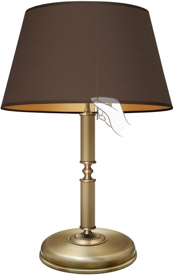 Stylowa lampa gabinetowa z mosiądzu. - Wykonana w całości z elementów z pełnego mosiądzu. Mosiądz to trwały, szlachetny i ponadczasowy materiał - kliknij, aby dowiedzieć się więcej. - Wykończenie mosiądzu: złota patyna.- Dwa sposoby włączania światła: włącznik łańcuszkowy oraz przełącznik na przewodzie zasilającym. W innych lampach z Serii L oferujemy dwie podobne lampy: pierwsza włączana jest przełącznikiem na przewodzie zasilającym (symbol L-B2m), a druga dodatkowo przyciskiem na podstawie lampy (symbol L-B2m-P).- Abażur ciemny brąz ze złotym środkiem lub (symbol lampy L-B2-L) ecru lub cappuccino zdobione wypukłymi złotymi paskami . - Wymiary całkowite: wysokość 54cm, średnica abażura 35cm, wysokość abażura 21cm.- W podstawie lampy umieszczony jest odważnik zapewniający jej stabilność.- Włącznik na przewodzie zasilającym (przewód w kolorze lampy wyprowadzony jest z boku podstawy). - Żródło światła: 2xE27 (żarówki tradycyjne/żarowe o mocy max. 60W) lub żarówki energooszczędne albo LED o większej mocy (np. odpowiednik 100W). Lampa jest fabrycznie nowa, wyprodukowana w Polsce. Gwarancja: 24 miesiące. Seria L - zobacz wszystkie lampy