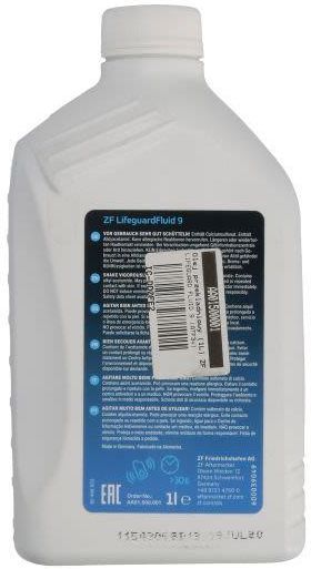 Olej przekładniowy (1l) zf lifeguard fluid 9 (atf3+). Jakość: ZF LifeGuardFluid 9 Jednostka pakowania: 1 Ilość w jednostce pakowania: 1