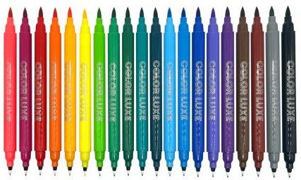 Dwustronne markery to podwójna frajda! W zestawie znajduje się aż dwadzieścia markerów, które zapewniają jeszcze więcej kreatywnej zabawy. Każdy z nich ma dwie końcówki: z jednej strony elastyczny rysik w kształcie pędzelka do malowania większych powierzchni, a z drugiej precyzyjną końcówkę o grubości 0,7 mm idealną do drobnych detali. Te żywe, zmywalne i nietoksyczne markery to świetny wybór zarówno dla początkujących artystów, jak i dla tych, którzy uwielbiają tworzyć małe dzieła sztuki. Zestaw Color Luxe zawiera 20 intensywnych kolorów, jest łatwy do czyszczenia i bezpieczny dla dzieci od szóstego roku życia. EAN: 0810104683012