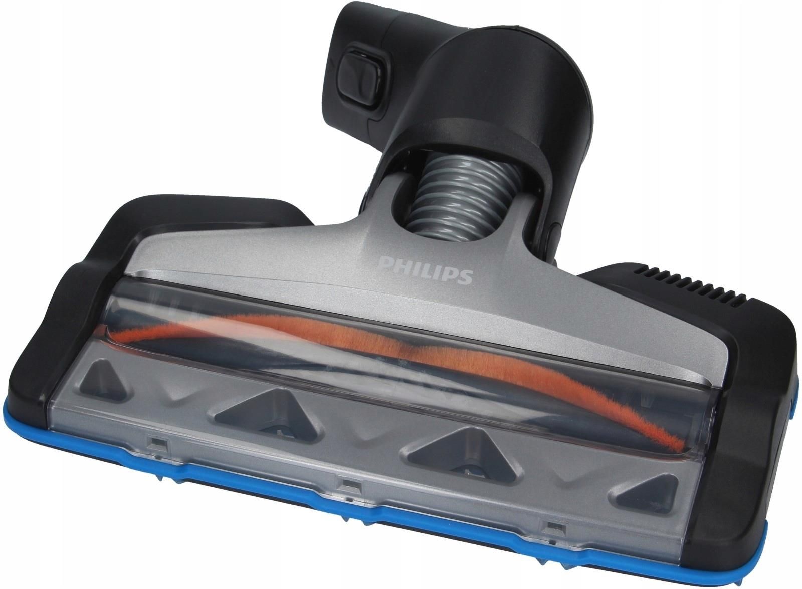 Turboszczotka 360 Suction do odkurzacza i odkurzacza bezprzewodowego Turboszczotka z serii 360 Suction przeznaczona jest do odkurzania dywanów oraz wykładzin. Została wyposażona w obrotową szczotkę, dzięki której umożliwia dokładne czyszczenie powierzchni. Włosie syntetyczne turboszczotki z łatwością umożliwia dogłębne czyszczenie delikatnych struktur. Turboszczotka została wyprodukowana przez firmę Philips Obrotowy wałek turboszczotki 360 Suction rozbija włosie oraz zgarnia wszelkie najdrobniejsze zanieczyszczenia. Turbossawka 360 Suction przywraca świeży oraz zadbany wygląd czyszczonym powierzchniom. Dzięki wyposażeniu w kółka turboszczotka z łatwością odkurzy wszystkie rodzaje podłóg – także twarde. Turboszczotka napędzana jest siłą zasysanego powietrza, dzięki czemu bez trudu eliminuje zanieczyszczenia. Szczególnie polecana posiadaczom zwierząt domowych. Turboszczotka Philips precyzyjnie zbiera głęboko tkwiące w dywanie sierść oraz włosy. Szczotka dodatkowo została wyposażona w pasek elektrostatyczny, który przyciąga kurz oraz znacznie ułatwia odkurzanie. Turboszczotka posiada ruchomy przegub, dzięki czemu umożliwia dokładniejsze czyszczenie oraz dotarcie do trudno dostępnych miejsc. PASUJE DO MODELI: FC6812, FC6813, FC6822, FC6823, FC6901, FC6902, FC6903, XC8045, XC8049, XC8147, XC8149. Produkt znajduje zastosowanie w urządzeniach z serii: SpeedPro Max, SpeedPro Max Aqua.
