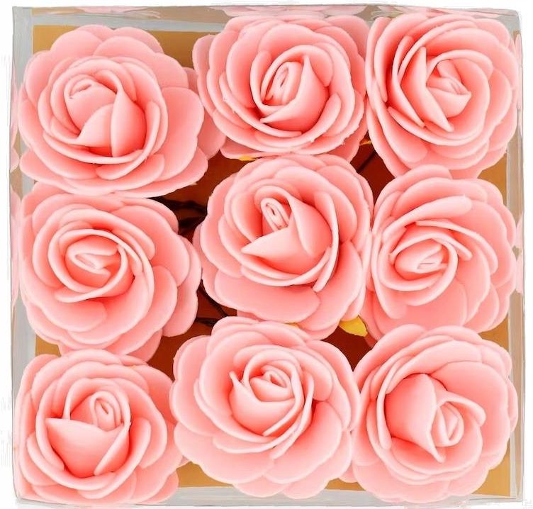 Róże piankowe różowe na drucie dekoracja Kwiaty z pianki na zginanym drucie Każda róża ma średnicę około 4 cm Doskonałe do różnych projektów kreatywnych Kolor: różowy Dekoracyjne róże są zrobione z pianki i nigdy nie zwiędną.