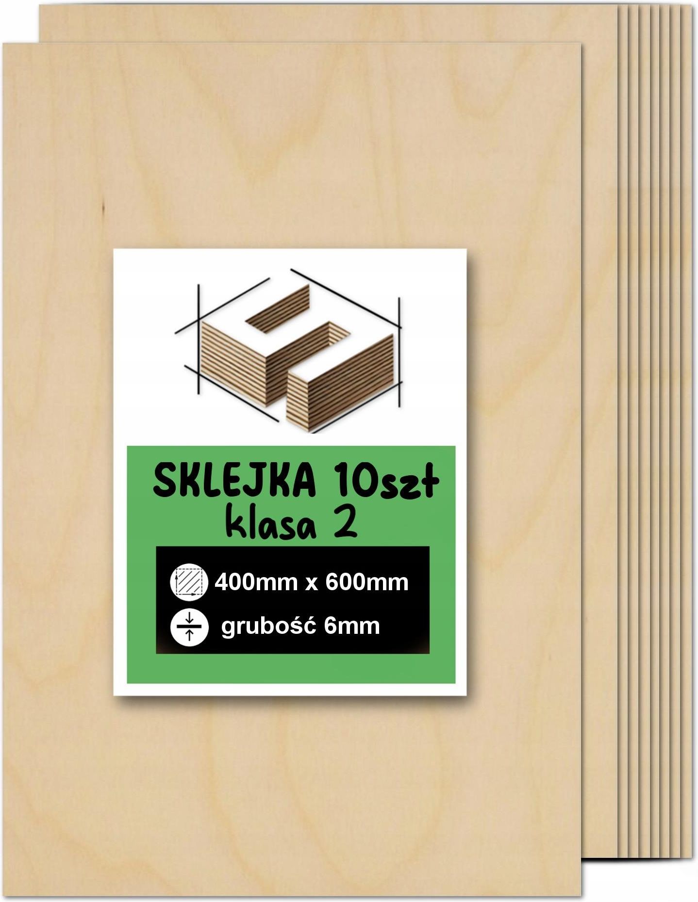 Sklejka brzozowa o wymiarach 6mm 400x600 mm - 10 szt. – Brzozowa, Idealna do Lasera, CNC i Grawerowania Sklejka 6 mm suchotrwała, Wymiary:400x600 mm, 40x60cm Klasa II Potrzebujesz precyzyjnie wykonanej sklejki do swojego projektu? Sklejka o grubości 6 mm, wymiarach 400x600 mm i klasie 2 to materiał, który spełni Twoje oczekiwania, niezależnie od tego, czy tworzysz w domu, czy realizujesz profesjonalne projekty. Dzięki wysokiej jakości i wszechstronności, nadaje się do wielu zastosowań, od grawerowania po obróbkę CNC. Dlaczego ta sklejka jest wyjątkowa? Została precyzyjnie przycięta przy użyciu profesjonalnych narzędzi, co gwarantuje doskonałe dopasowanie wymiarów. Naturalny charakter drewna sprawia, że każda sztuka posiada unikalne słoje i odcień, podkreślając jej autentyczność. Zastosowanie: 🔹 Grawerowanie – stwórz unikalne projekty i personalizacje. 🔹 Obróbka CNC – idealna do precyzyjnych konstrukcji i cięć. 🔹 Modelarstwo – idealny materiał do tworzenia szczegółowych modeli. 🔹 Majsterkowanie – nadaje się do kreatywnych projektów DIY. 🔹 Ozdabianie – doskonała baza do dekoracji i artystycznych projektów. 🔹 Podstawki pod gorące naczynia – funkcjonalność i estetyka w jednym. Unikalne cechy: 🌿 Naturalny wygląd – każda sztuka to wyjątkowy produkt z widocznymi słojami. Precyzyjne cięcie – idealne dopasowanie bez strat materiału. 🛠️ Wszechstronność zastosowań – produkt dla hobbystów i profesjonalistów. Odcień i słoje drewna mogą różnić się od przedstawionych na zdjęciu, co dodatkowo podkreśla unikalny charakter materiału. CECHY PRODUKTU Grubość: 6 mm Wymiary: 400x600 mm Klasa drewna: 2 Do obróbki: CNC, grawerowanie, majsterkowanie Materiał: naturalne drewno Stwórz coś wyjątkowego z naszą sklejką – ogranicza Cię tylko wyobraźnia! 🎨
