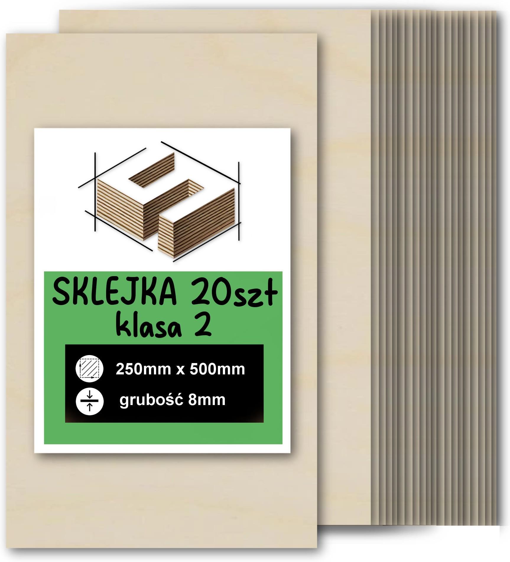 Sklejka o wymiarze 25x50cm grubość: 8 mm, wymiary: 250mm x 500mm Klasa II, 20 szt. – Brzozowa, Idealna do Lasera, CNC i Grawerowania Sklejka 8 mm suchotrwała, Wymiary: 250 x 500 mm, Klasa II. Potrzebujesz precyzyjnie wykonanej sklejki do swojego projektu? Sklejka o grubości 8 mm, o klasie II to materiał, który spełni Twoje oczekiwania, niezależnie od tego, czy tworzysz w domu, czy realizujesz profesjonalne projekty. Dzięki wysokiej jakości i wszechstronności, nadaje się do wielu zastosowań, od grawerowania po obróbkę CNC. Dlaczego ta sklejka jest wyjątkowa? Została precyzyjnie przycięta przy użyciu profesjonalnych narzędzi, co gwarantuje doskonałe dopasowanie wymiarów. Naturalny charakter drewna sprawia, że każda sztuka posiada unikalne słoje i odcień, podkreślając jej autentyczność. Zastosowanie: 🔹 Grawerowanie – stwórz unikalne projekty i personalizacje. 🔹 Obróbka CNC – idealna do precyzyjnych konstrukcji i cięć. 🔹 Modelarstwo – idealny materiał do tworzenia szczegółowych modeli. 🔹 Majsterkowanie – nadaje się do kreatywnych projektów DIY. 🔹 Ozdabianie – doskonała baza do dekoracji i artystycznych projektów. 🔹 Podstawki pod gorące naczynia – funkcjonalność i estetyka w jednym. Unikalne cechy: 🌿 Naturalny wygląd – każda sztuka to wyjątkowy produkt z widocznymi słojami. Precyzyjne cięcie – idealne dopasowanie bez strat materiału. 🛠️ Wszechstronność zastosowań – produkt dla hobbystów i profesjonalistów. Odcień i słoje drewna mogą różnić się od przedstawionych na zdjęciu, co dodatkowo podkreśla unikalny charakter materiału. CECHY PRODUKTU Grubość: 8 mm Wymiary: 250x500 mm Klasa drewna: 2 Do obróbki: CNC, grawerowanie, majsterkowanie Materiał: naturalne drewno Stwórz coś wyjątkowego z naszą sklejką – ogranicza Cię tylko wyobraźnia! 🎨 Odcień i słoje mogą się różnic od tych przedstawionych na zdjęciu ze względu na naturalny charakter drewna. Cięcie z dokładnością +- 1%.