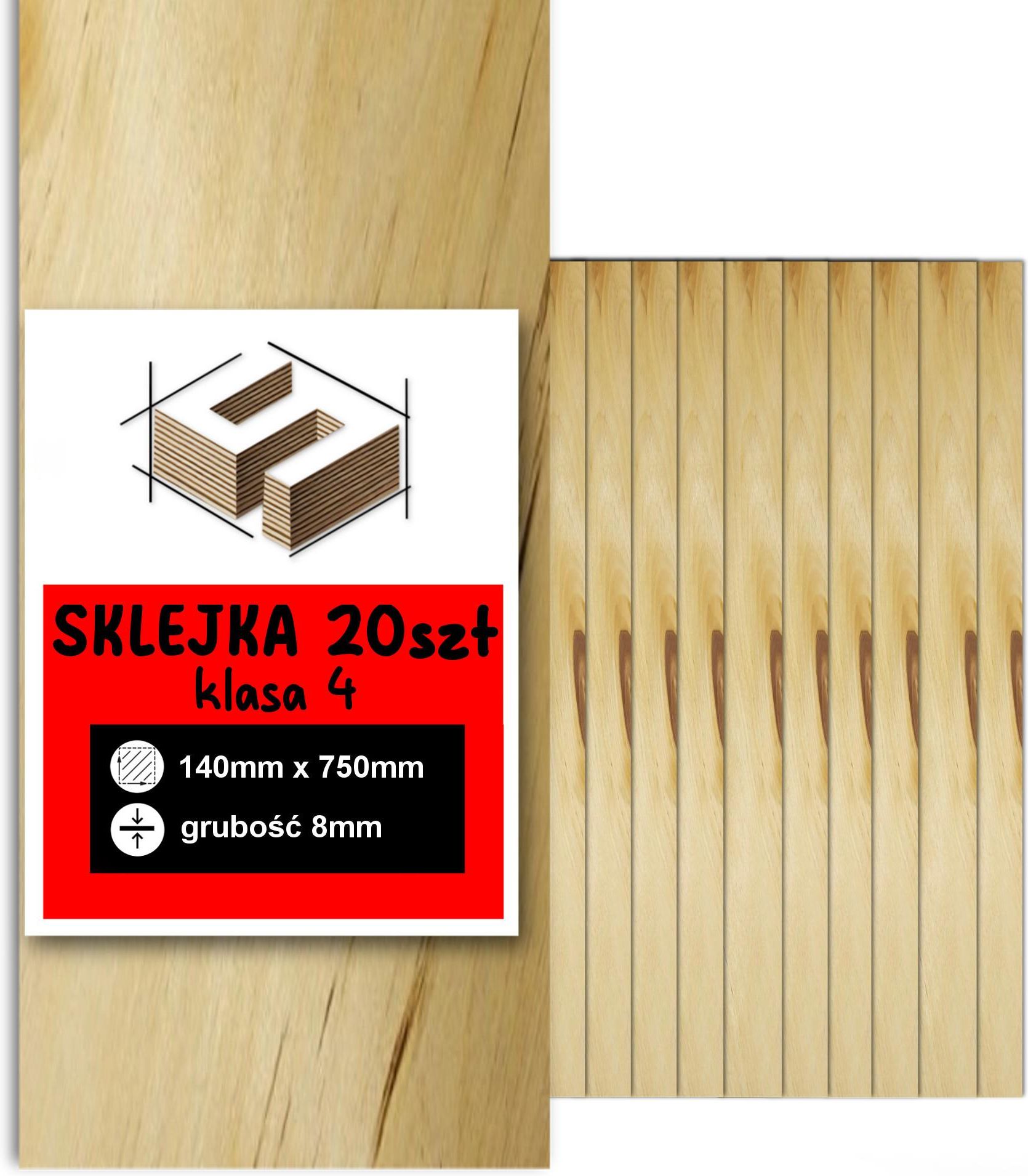 Sklejka o wymiarze 14 x 75 cm grubość: 8 mm, wymiary: 140mm x 750 mm Klasa IV, 20 szt. – Brzozowa, Idealna do Lasera, CNC i Grawerowania Sklejka 8 mm suchotrwała, Wymiary: 140 x 750 mm, 14 x 75 cm Klasa IV. Potrzebujesz precyzyjnie wykonanej sklejki do swojego projektu? Sklejka o grubości 8 mm, o …