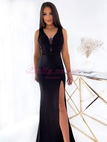 Sukienka Marcela krótka kolor czarny Zjawiskowa długa wąska sukienka z rozporkiem eksponującym nogę. Góra sukienki z pięknym dekoltem . Zapinana z tyłu na zamek. Sukienka uszyta z lekko rozciągliwego materiału dzięki czemu idealnie dopasowuje się do ciała. Na brzuchu , po bokach oraz na dekolcie …