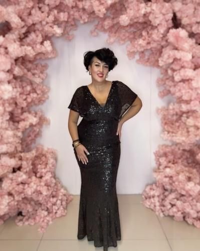 Zjawiskowa długa sukienka uszyta z rozciągliwego materiału udekorowana w całości cekinami. Sukienka idealnie dopasowuje się do ciała. Piękny wycięty dekolt ozdobiony prześwitującą siateczką oraz przepiękne kdelikatne rękawki. Wszyte miseczki pozwalają na nie zakładanie biustonosza. Sukienka …