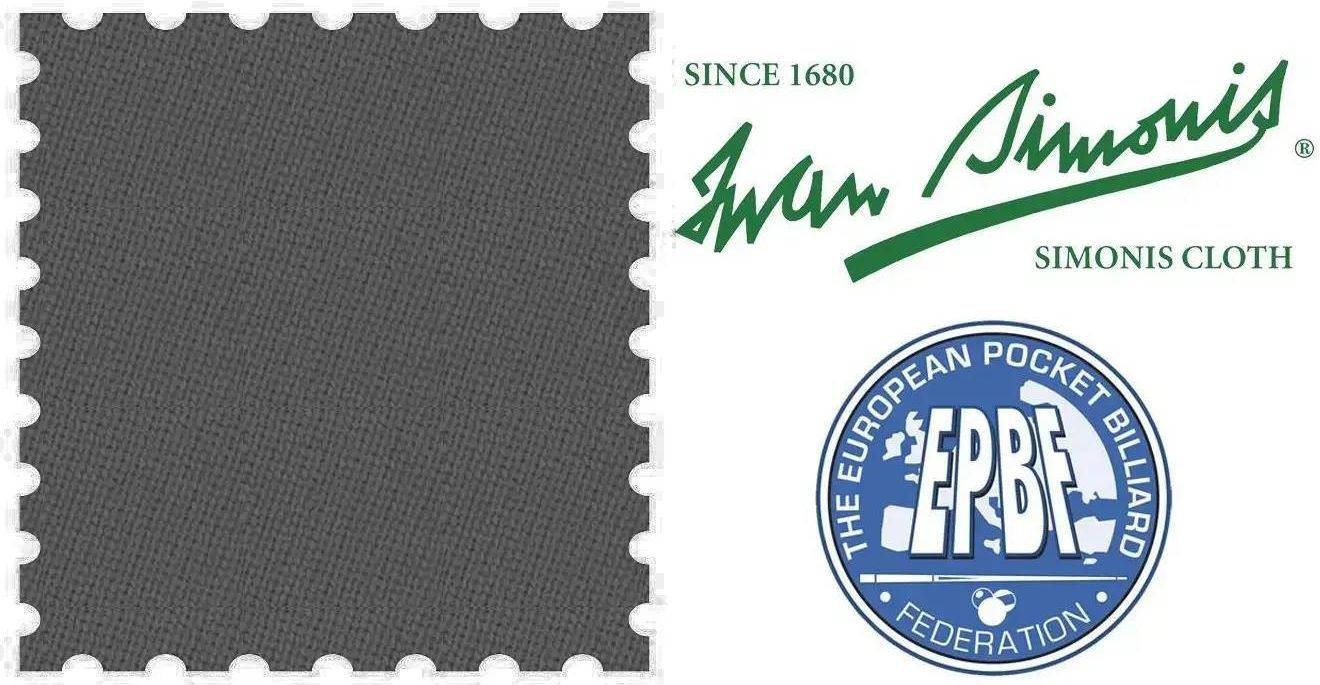 Sukno bilardowe SIMONIS 860 198cm Shark Grey Firma Euro-Tech posiada największy w Polsce stan magazynowy profesjonalnego sukna bilardowego Simonis 860 w szerokiej gamie kolorystycznej.Sukno Simonis 860 znane jest jako sukno używane praktycznie na każdym większym turnieju na świecie.Zawdzięcza to równomiernej powierzchni, wysokiej jakości oraz wieloletniemu doświadczeniu firmy Simonis w produkcji sukna bilardowego. Potrzebna ilość sukna Simonis w zależności od rozmiaru stołu: 9ft – 3.9 mb8ft –3.2 mb7ft – 2.3 mb6ft - 2.1 mb Skład: 90% wełna i 10% nylon;Szerokość: 165 cm;Gramatura: ± 410g/m² Uwaga: w zależności od ustawień monitora i komputera, kolor sukna może się nieznacznie różnić od rzeczywistego. [[en]] {{Billiard Cloth SIMONIS 860 198cm Shark Grey}}
