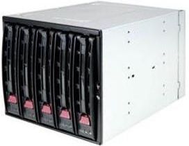 Obudowa serwerowa o wymiarach: Wysokość 5" Szerokość 5,8" Głębokość 9,7" z wentylatorem/ 7,7" bez wentylatora Waga bruttto 3,4 kg z opakowaniem /2,6 kg tylko stelaż mobilny Posiadająca 1x wentylator wyciągowy 90mm, 2x złącza dysku twardego Mini SAS. Wskaźnik LED przegrzania oraz diodę informująca o aktywności napędu. 5x3,5-calowe dyski twarde SAS/SATA z możliwością wymiany podczas pracy, 3 wnęki na napęd 5,25"