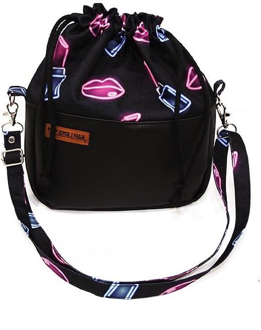 Torebka Sakiewka Czarna z Neonowym Motywem Szminki i Ust – Handmade Chrzanów