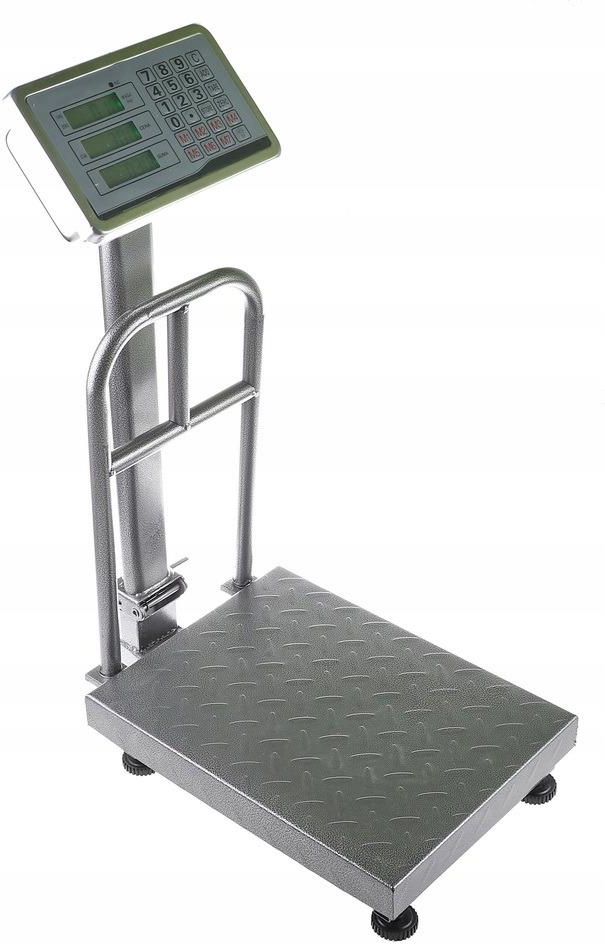 Waga z podpórką do 150 kg Urządzenie niezbędne na każdym magazynie, ale przydatne również w domu lub w sklepie Cechy produktu: Waga wykonana z wysokiej jakości stali o dużej odporności na rdzę Dokładność pomiaru: 10 g Maksymalne obciążenie: 150 kg Polskie napisy na wadze W zestawie montowane podparcie Waga posiada wskaźnik rozładowania baterii Waga wyposażona w 3 wyświetlaczy, każdy ma możliwość podświetlenia na zielono Zapamiętuje do 7 cen Waga posiada funkcję wyliczania cen Zasilanie: Akumulator 4V / 4ah (GRATIS w zestawie) Waga posiada funkcję TARA: możliwość ważenia w pojemnikach W zestawie kabel do ładowania Waga posiada regulowane nóżki co umożliwia korzystanie z niej na nierównej powierzchni UWAGA! Waga występuje z różnymi kolorami przycisków i wyświetlacza, wysyłamy losowo Wymiary: Wymiary szalki: 30 x 40 cm Wysokość do panelu : 55 cm Wysokość całkowita: 72 cm Długość całkowita: 50 cm
