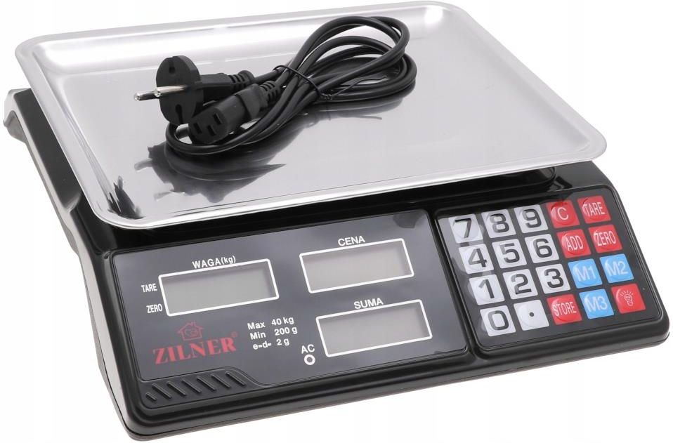 Waga elektroniczna do 40 kg z dokładnością do 2 gram Urządzenie niezbędne w każdym sklepie, ale przydatne również w domu lub na magazynie Cechy produktu Szalka wykonana ze srali Dokładność pomiaru: 2 g Maksymalne obciążenie: 40 kg Polskie napisy na wadze Waga posiada wskaźnik rozładowania baterii Waga wyposażona w 5 wyświetlaczy, każdy ma możliwość podświetlenia Zapamiętuje do 8 cen Waga posiada funkcję wyliczania cen Zasilanie: Akumulator 4V / 4ah (GRATIS w zestawie) Waga posiada funkcję TARA: możliwość ważenia w pojemnikach Waga posiada Auto-off: nie używana wyłącza się sama W zestawie kabel do ładowania Wymiary szalki: 31,7 x 25,5 cm Wymiary wagi: 34,7 x 29,5 x 12,5 cm UWAGA! Waga występuje z różnymi kolorami przycisków, wysyłamy losowo