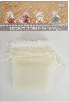 Woreczki z organzy Na prezent Upominek Zestaw 5 sztuk Woreczki z organzy nadają się jako eleganckie opakowanie do drobnego upominku. Cechy: Z praktycznym sznureczkiem do zamykania Specyfikacja: Ilość: 5-pak Wymiary: 10 x 8 cm