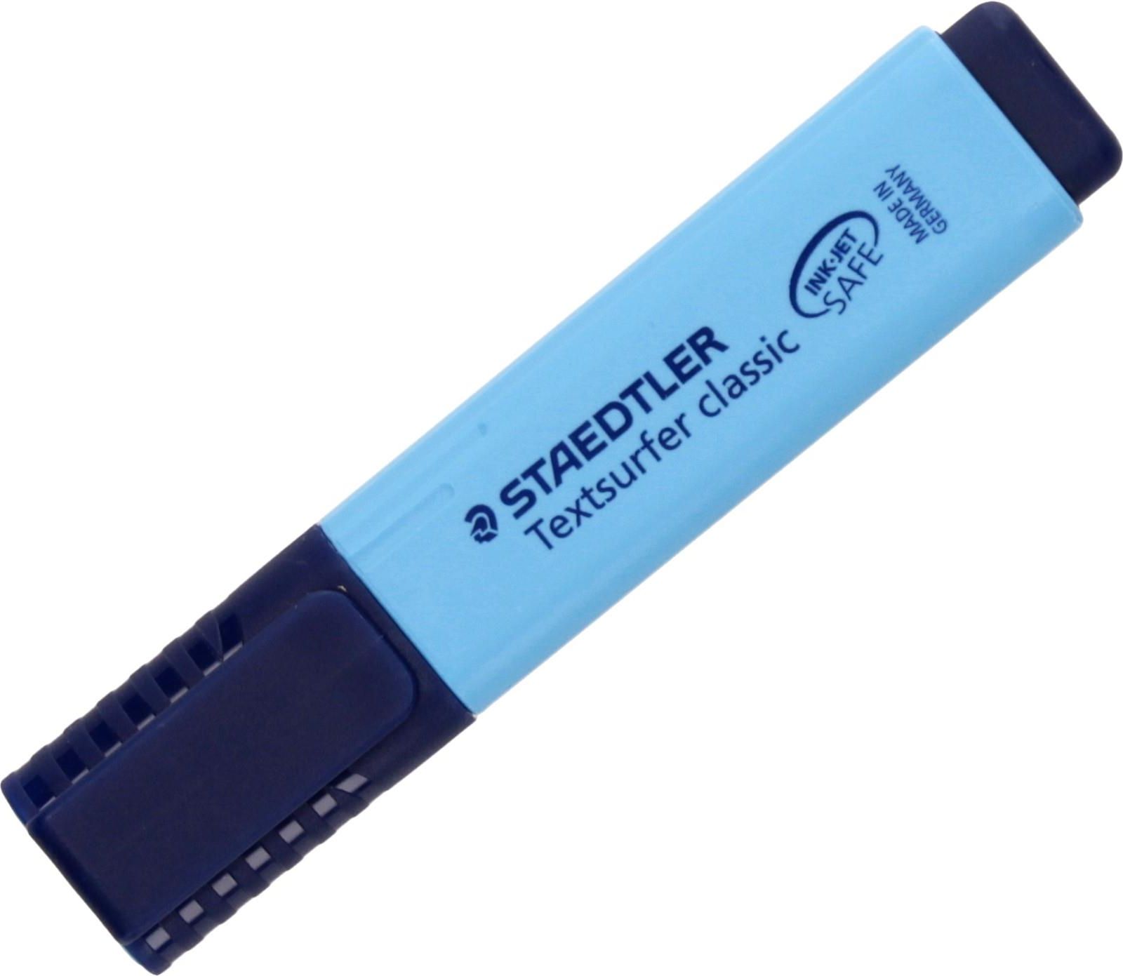 Zakreślacz niebieski Texsurfer Staedtler Kod produktu: ST1022 Marka: Staedtler Kolor: Niebieski Klasyczny, biurowy zakreślacz posiadający duży i wydajny zasobnik na atrament będący gwarancją długiej żywotności produktu. Dobry jakościowo atrament pigmentowy, wyraziście odznacza wybrany tekst na dokumencie. Odporny na blaknięcie i szybkoschnący. Wsparty jest systemem INJEKT SAFE, dzięki któremu zakreślacz nie rozmazuje świeżych wydruków jak i pisma odręcznego. Posiada bardzo gładką, ściętą końcówkę która doskonale dostosowuje się do powierzchni. Może być użytkowany w samolocie, dzięki zastosowaniu systemu automatycznego wyrównywania ciśnienia mamy całkowitą pewność, że z pisaka nie wyleje się atrament. Produkt niezbędny w każdym biurze, doskonały do eksponowania istotnych informacji w dokumentach, pismach, notatkach itp.