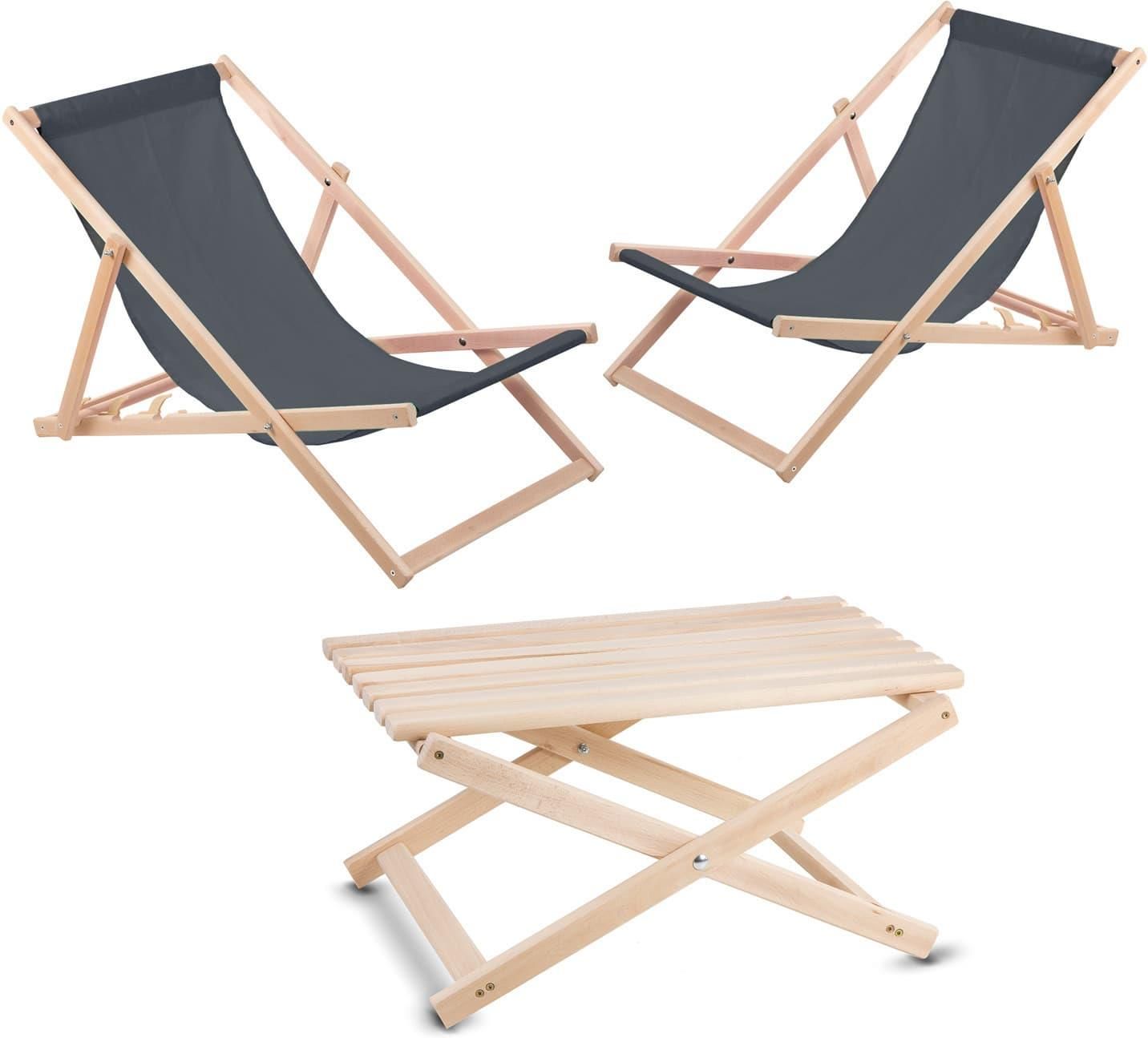 Zestaw Dwa Lezaki Szare Stolik Złozone Chrzanów