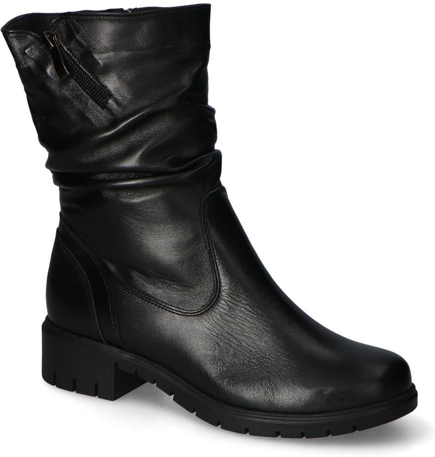 Botki Agmos:- cholewka wykonana została ze skóry naturalnej licowej - wnętrze pokryte zostało materiałem ocieplającym - ocieplana wkładka wewnętrzna aby zapewnić ciepło podczas użytkowania w zimne dni - zamek błyskawiczny ułatwia zakładanie obuwia - obcas o wys. 4 cm zapewnia odpowiednią stabilizację - czarny kolor i elegancki fason tworzą idealne połączenie!